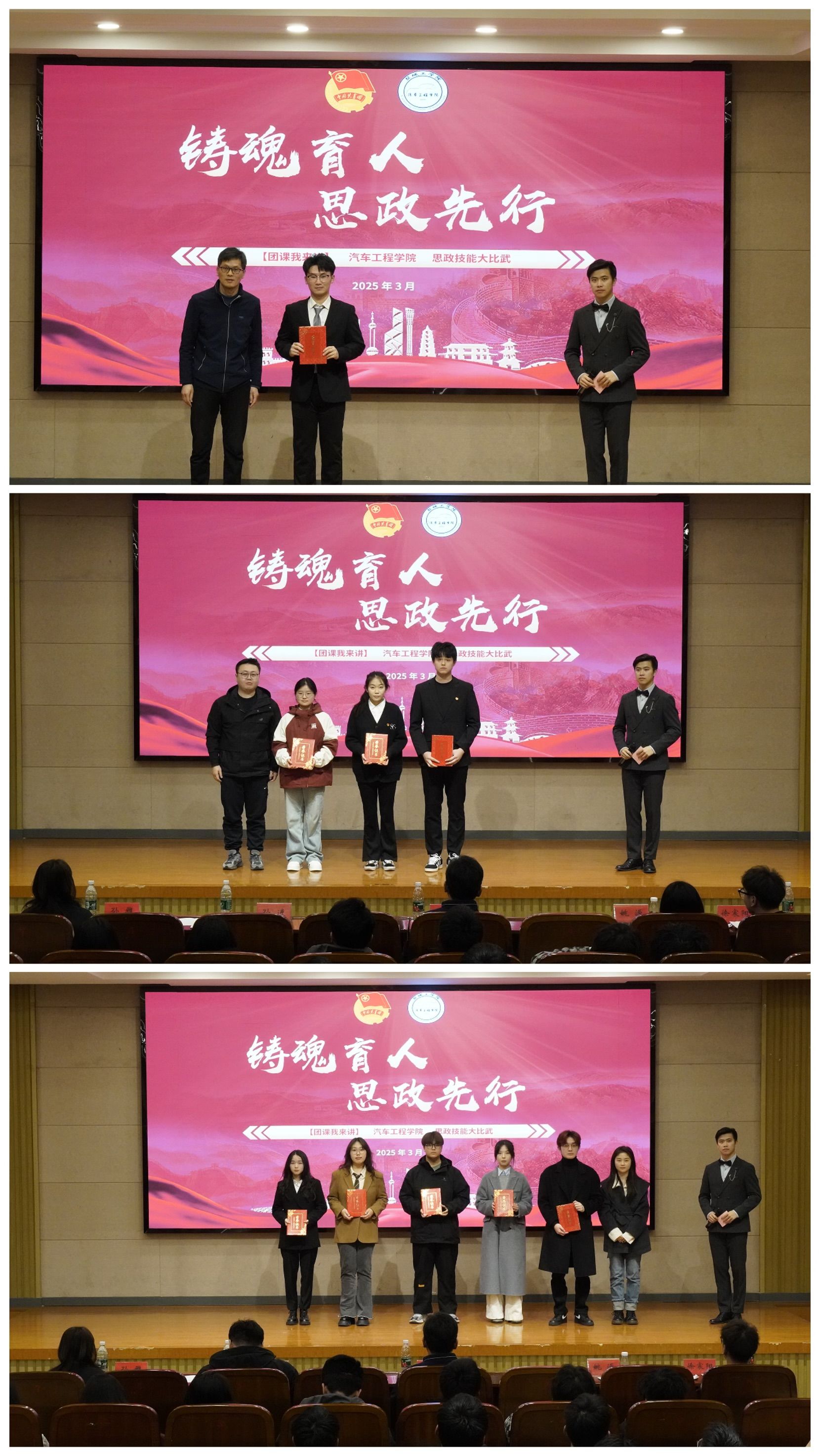 为进一步加强政治引领,用党的创新理论武装青年头脑,3月19日晚,汽车工程学院在南校区机械馆报告厅举办 “铸魂育人,思政先行 —— 团课我来讲” 院内选拔赛。汽车工程学院党总支副书记丁德惠、学工办主任孙进、团委副书记姚源、新生辅导员孙雅、第四届思政技能大比武省赛一等奖获得者徐宸阳同学担任评委,大一新生与菁英班学生代表等100余人参加本次活动。
