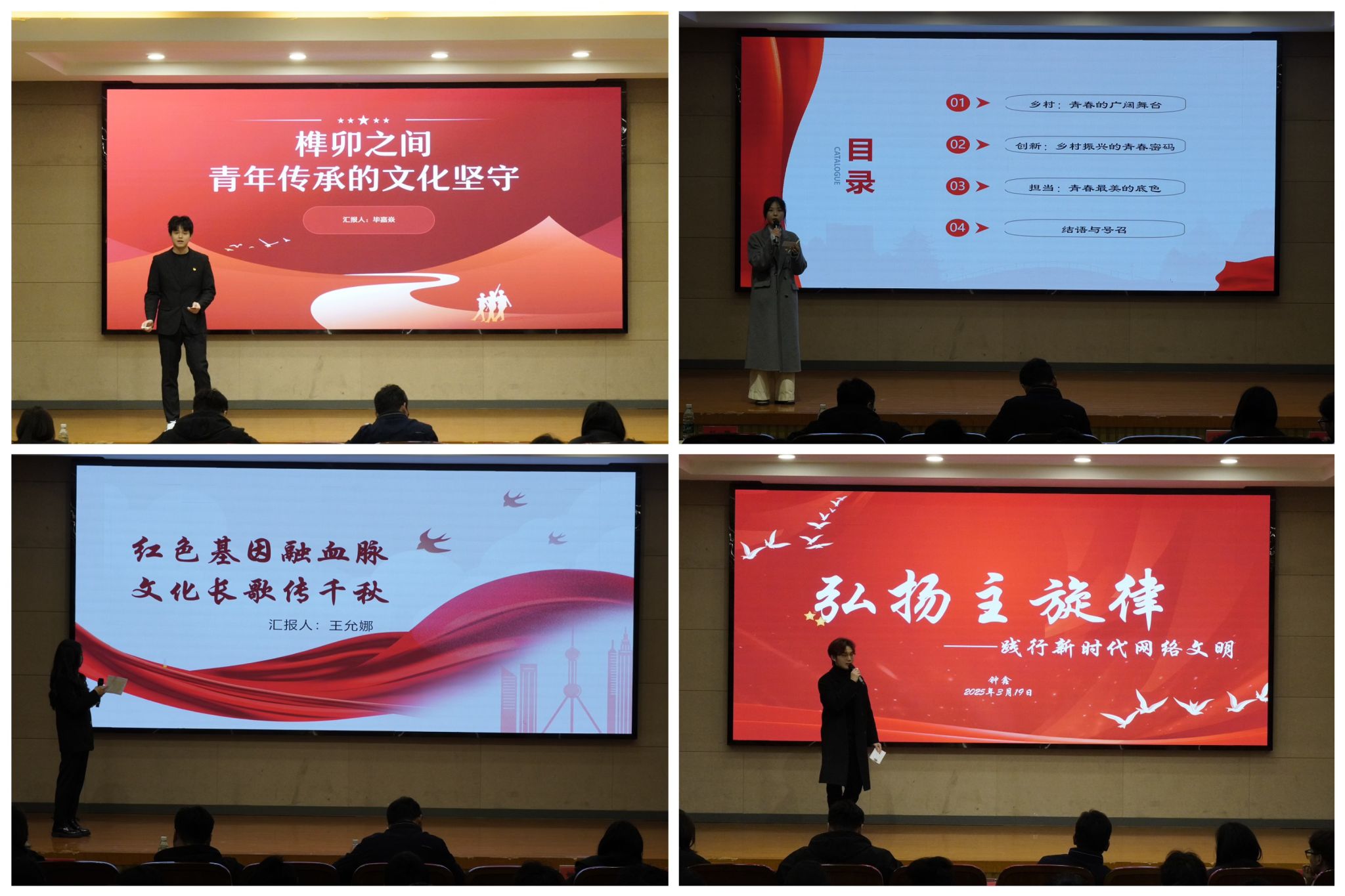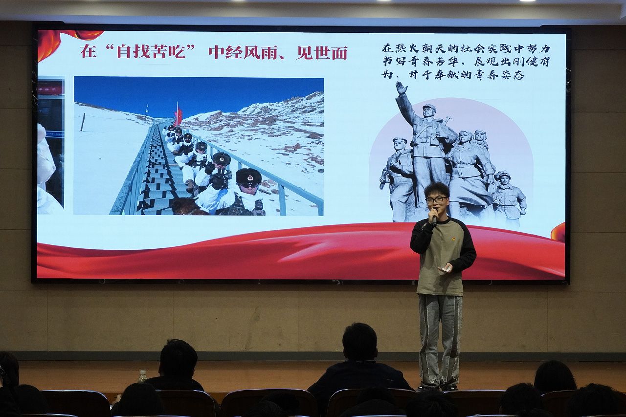 活动最后,丁德惠指出,同学们通过讲革命、说历史、谈科技、聊生态,在团课中生动诠释了当代青年的理想信念。思政团课作为学院落实 “立德树人” 根本任务的重要举措,不仅是对思政教学的检验,更是淬炼青年信仰的课堂。学院团委应以此次活动为契机,深入构建 “理论 + 实践 + 网络” 育人矩阵,推进 “青马学员” 传帮带,让思政团课更贴近学生、更具实效。他希望全体同学以徐宸阳同学为榜样,将比赛热情转化为成长动力,以更积极的姿态,在教育科技人才事业发展的浪潮中,用青春之声传播时代强音,努力成长为有理想、敢担当、能吃苦、肯奋斗的新时代先锋。
