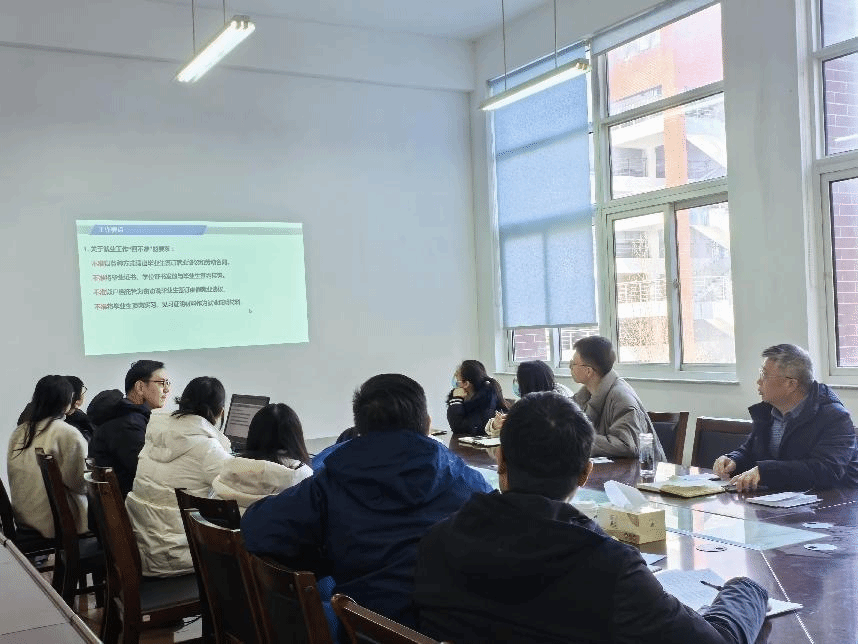 为深入学习贯彻党的二十大精神,全面落实党中央、国务院关于实施就业优先战略、促进高质量充分就业的决策部署,切实提升2025届毕业生考研复试备战能力与就业求职竞争力,经济管理学院于3月19日上午在希望大道校区仁和楼202会议室召开2025届学生就业考研工作推进会。学院党委副书记周旺基、学工办主任高加友、团委书记朱碧玲及全体专兼职辅导员参加会议。