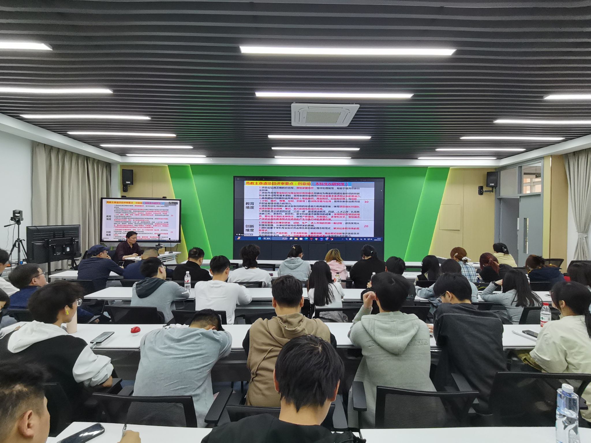 王勇能老师以大学生创新大赛项目文本撰写与打磨为主题,分析了近年参赛项目变化趋势和评审要点,从背景现状、技术痛点、创新价值等方面全面梳理撰写逻辑,逐一讲解项目介绍、团队构成、财务融资等十个打磨要点,指导备赛师生完善网评PPT制作,深入发掘项目创新价值。会上还耐心解答了学生提问,为项目优化提供指导意见。