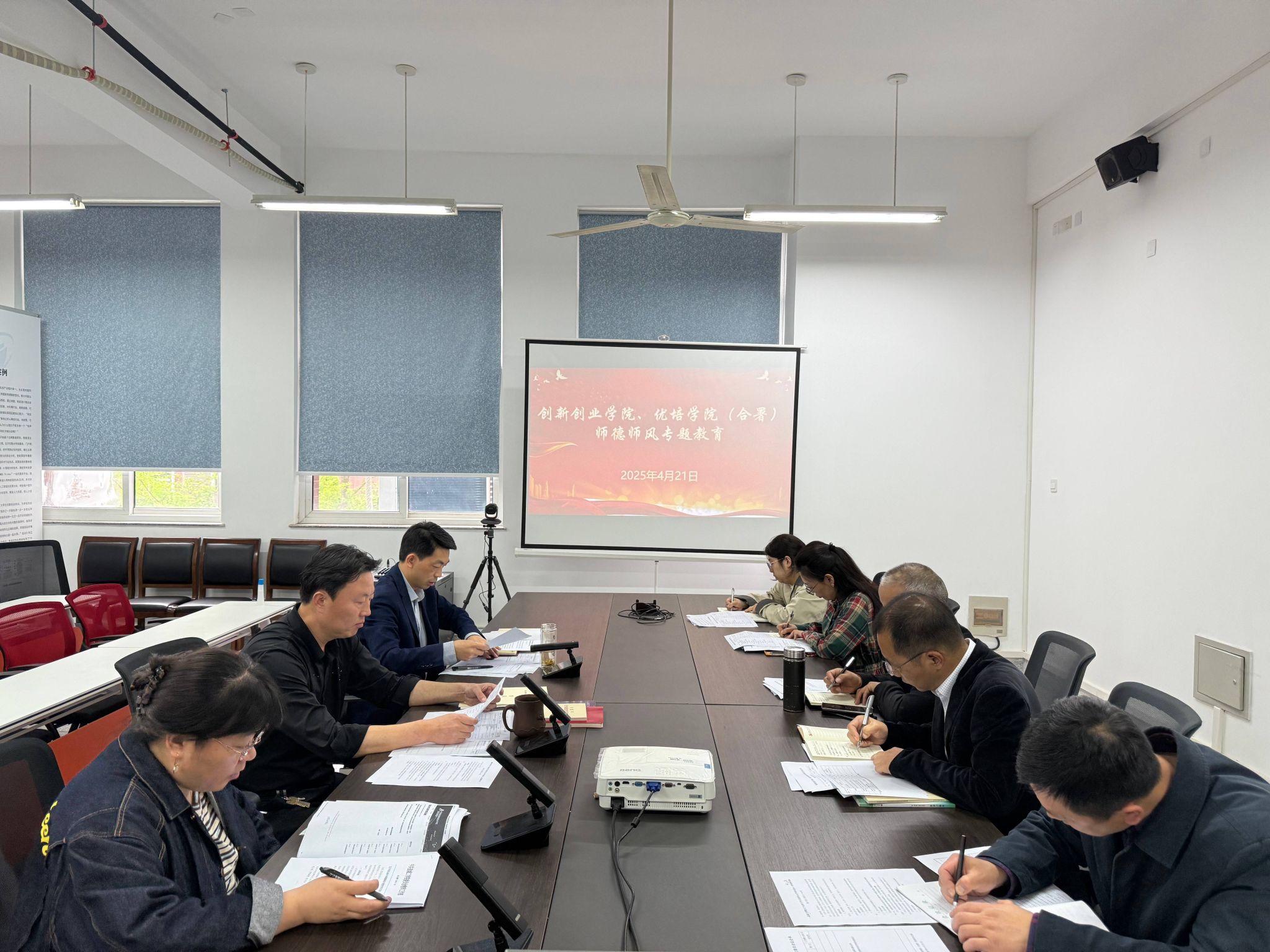 为深入学习贯彻习近平总书记关于师德师风建设的重要论述,进一步增强立德树人的责任感和使命感,4月21日下午,创新创业学院、优培学院(合署)党总支在希望大道校区仁和楼A202东会议室开展师德师风专题教育。学院党总支书记魏巍主持,全体教职工参加。
