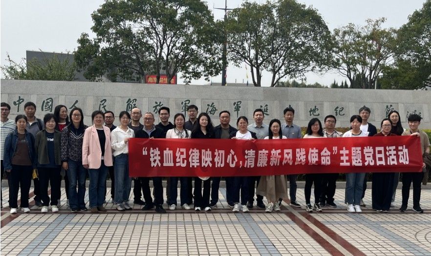 4月19-20日,环境学院党总支组织全体党员赴江苏省泰州市,开展以“铁血纪律映初心,清廉新风践使命”为主题的党日活动。此次活动通过参观泰州海军诞生地纪念馆、黄桥战役纪念馆两处红色教育基地,重温中国共产党领导人民军队在革命战争年代的奋斗历程,感悟革命先辈坚定信念、艰苦奋斗、纪律严明的精神品质,激励党员干部赓续红色血脉,强化使命担当。