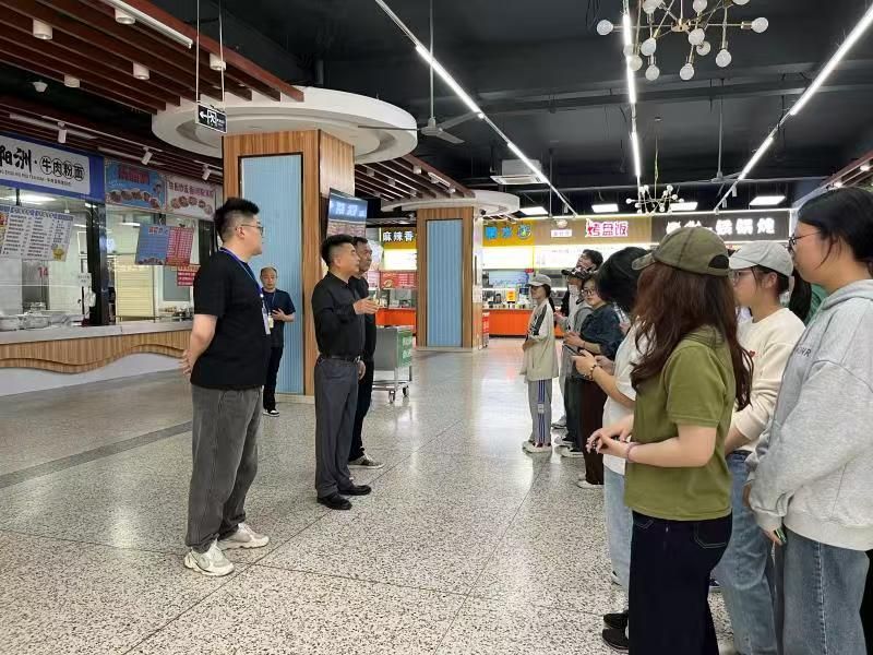 此次活动主要通过实地参观、互动实践等形式,沉浸式体验食堂日常运营的流程与细节,感受后勤工作的辛勤。饮服中心负责人对本次开放日的流程进行了介绍,并围绕食堂管理、食品安全、菜品创新等内容进行了宣讲。随后,同学们在工作人员的引导下走进后厨,实地参观食材存储区、清洗加工间、烹饪操作间等区域。从食材采购的严格检验到餐具消毒的规范流程,从“明厨亮灶”的实时监控到厨余垃圾的分类处理,同学们近距离感受到食堂管理的科学化与精细化。汽车学院学生杨玲感慨:“原来一顿饭的背后,需要经历这么多严谨的环节,师傅们的专业和细心让我特别安心。”