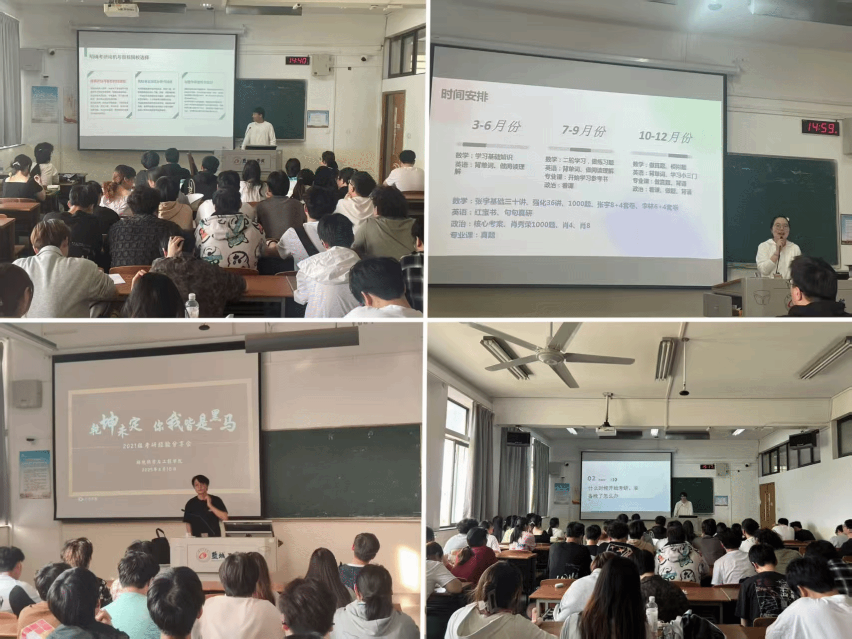 分享会上,来自不同专业的10位考研成功的2021级学生结合自身经历,围绕院校专业选择、复习计划制定、学科重点突破、应试技巧提升等核心问题展开细致讲解。他们通过具体案例分析了考研各阶段的注意事项,并针对备考资料、时间管理方法、心态调整技巧等学生普遍关心的问题提出了实用建议。