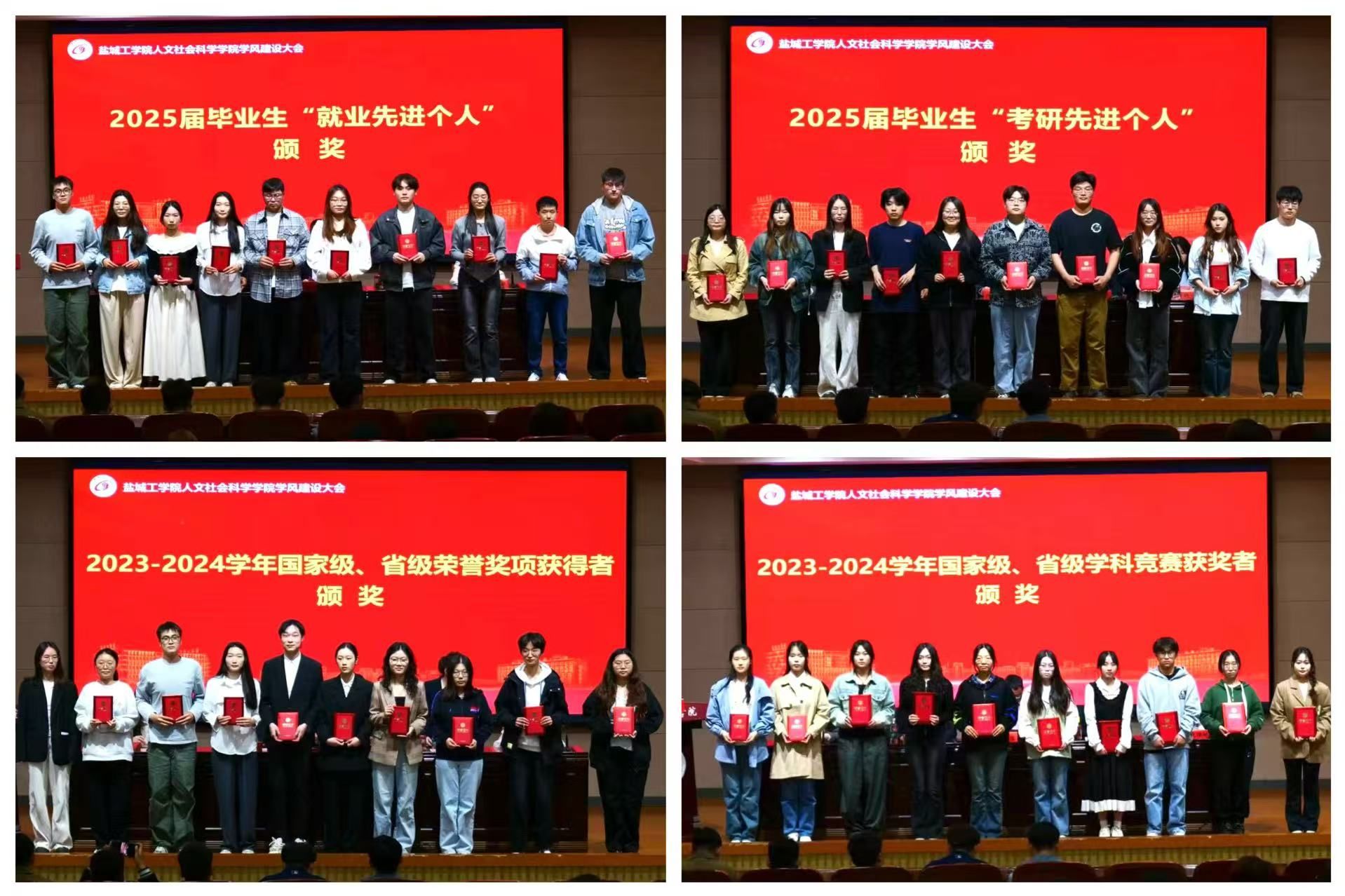 邢千里宣读《人文社会科学学院2024-2025学年学风建设工作实施方案》《人文社会科学学院关于表彰考研先进个人的决定》《人文社会科学学院关于表彰就业先进个人的决定》。学院团委副书记乐珮珮宣读国家级、省级荣誉和学科竞赛奖项获得者名单。