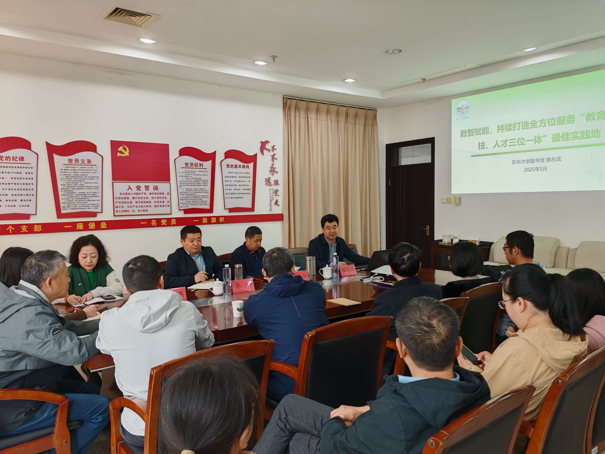 为进一步强化人工智能技术应用能力,助力数智赋能时代图书馆服务能力和管理水平提升,5月9日下午,图书馆邀请上海市图书馆学会信息技术专业委员会主任、东华大学图书馆馆长助理骆永成教授作题为《数智赋能,持续打造全方位服务“教育、科技、人才三位一体”最佳实践地》的专题报告。馆长李明主持报告会,各部室主任及业务骨干等20余人参加。