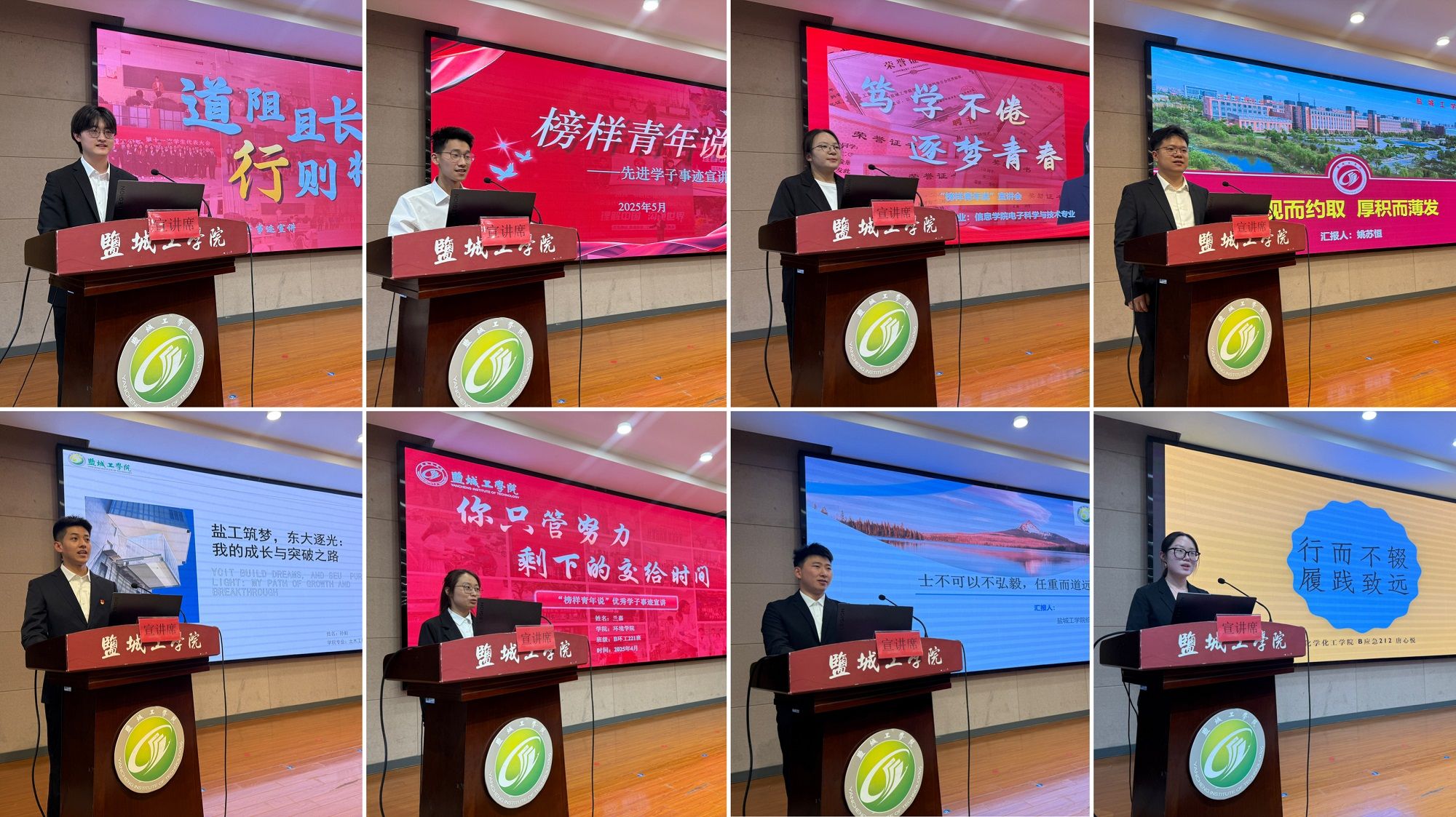宣讲围绕励志成才、学科竞赛、考研上岸三个篇章开展。“励志成才篇”中,来自经管学院、人文学院、纺服学院的王越谦、陆澄、张杰同学分享了从逆境中奋起、通过不懈努力实现蜕变的经历;“学科竞赛篇”中,机械优集学院姚苏恒同学和环境学院兰嘉同学结合参与国家级、省级竞赛的实战经验,讲述了如何将专业知识转化为创新成果;“考研上岸篇”中,化工学院唐心悦同学、土木学院孙毅同学、信息学院王颖同学回顾了从迷茫到坚定的备考历程,为在场同学提供了宝贵的方法建议。宣讲同学用真挚的语言和鲜活的案例,展现了新时代青年笃行不怠、追求卓越的精神风貌。