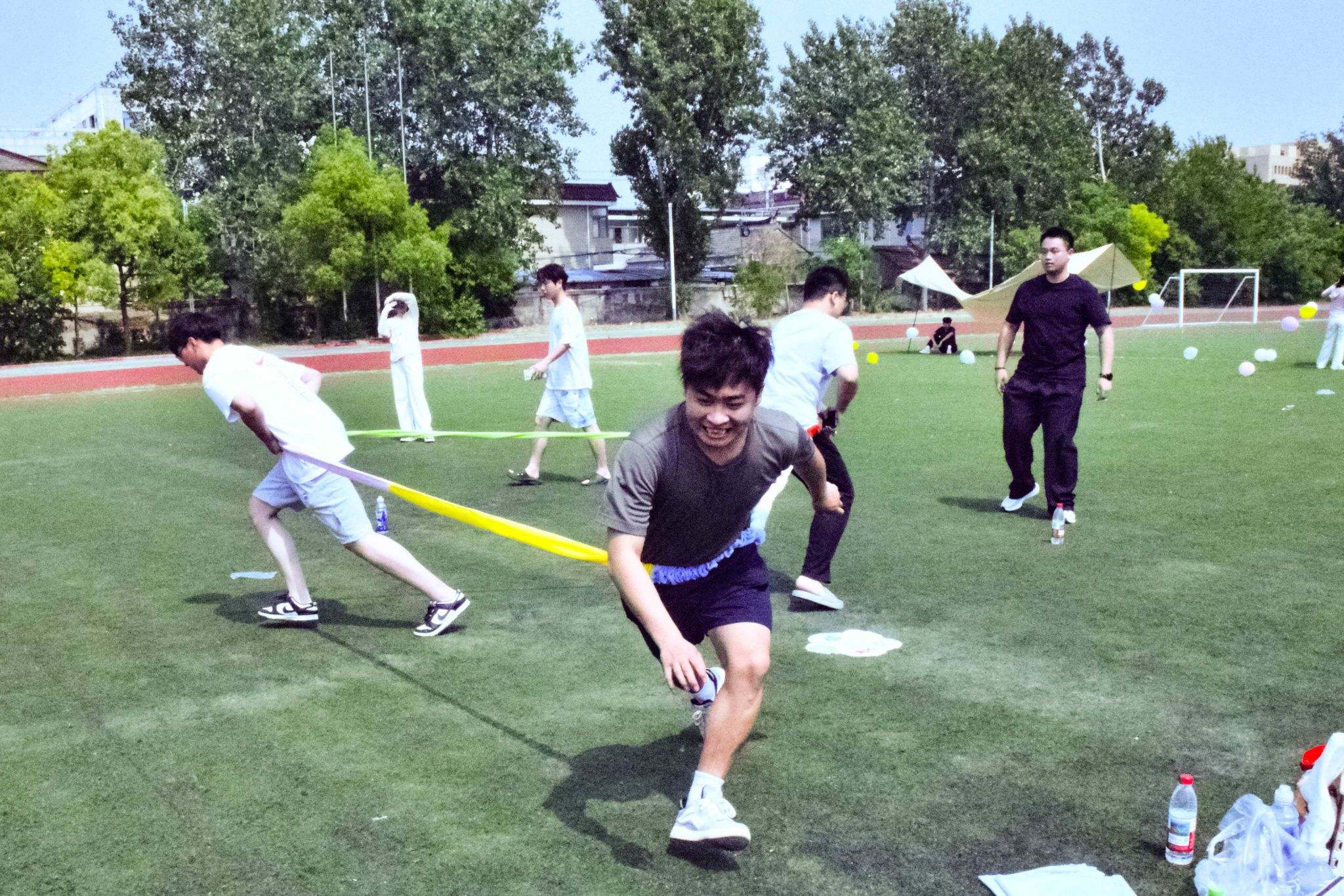 活动现场,同学们积极参与,热情高涨。本次活动精心策划并设置了撕名牌、抢零食大战、筷子夹球等近二十个精彩项目。“撕名牌”环节中参与者们个个斗志昂扬,如离弦之箭般冲向对手,目光敏锐、动作敏捷,以迅雷不及掩耳之势撕下对手的姓名牌,现场气氛紧张刺激,欢呼声和喝彩声此起彼伏;“抢零食大战”的现场更是热闹非凡,学院拉拉队的加油声震耳欲聋,选手们为了学院的荣誉拼尽全力,在“抢夺”中展现出强烈的集体荣誉感和顽强的拼搏精神;“筷子夹球”摊位前,参与者们全神贯注,眼神紧紧锁定在小小的球上,双手小心翼翼地操控着筷子,引来周围人的阵阵喝彩。大家在专注的过程中,深刻体会到耐心与细致的重要性;“大富翁”游戏区域,同学们化身为精明的商人,在虚拟的财富冒险中,不断做出决策、制定策略,不仅锻炼了自己的决策能力和策略思维,更深刻体会机遇与挑战并存的乐趣;投壶这一传统游戏区域也吸引了众多师生的目光,大家纷纷摩拳擦掌、跃跃欲试,一投一掷间感受着古人的雅趣与智慧。每个游戏摊位前都围满了热情的参与者,大家在游戏中释放压力,增进友谊,享受露营派对的快乐。