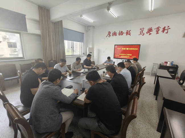 5月19日上午,材料科学与工程学院党委在知达楼B314会议室组织开展“510”思廉月警示教育,会议由学院党委书记唐浩主持,学院领导、各科室负责人和各专业系负责人参加。
