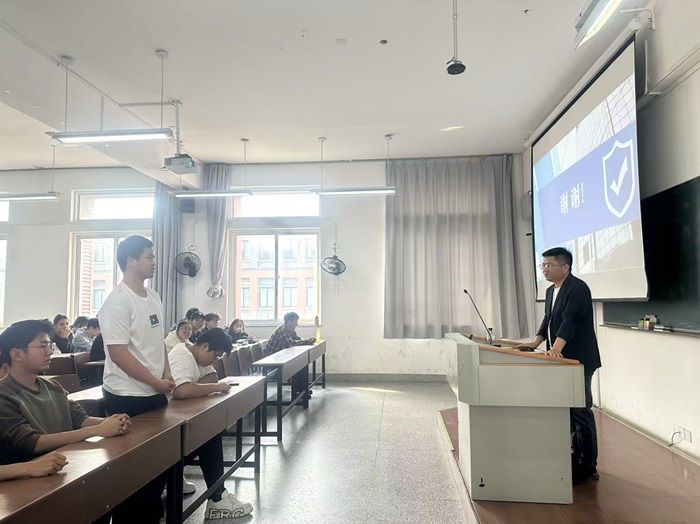在互动环节,孙仁斌与学生们进行了深入交流。他耐心解答了学生们在专业学习中遇到的疑问,并就学业规划、职业发展以及人生目标等话题与大家展开热烈讨论。他鼓励学生们树立远大理想,扎实掌握专业知识,积极拥抱行业新技术,为未来的职业生涯打下坚实基础。他的真诚建议和亲切指导赢得了在场学生的热烈掌声。