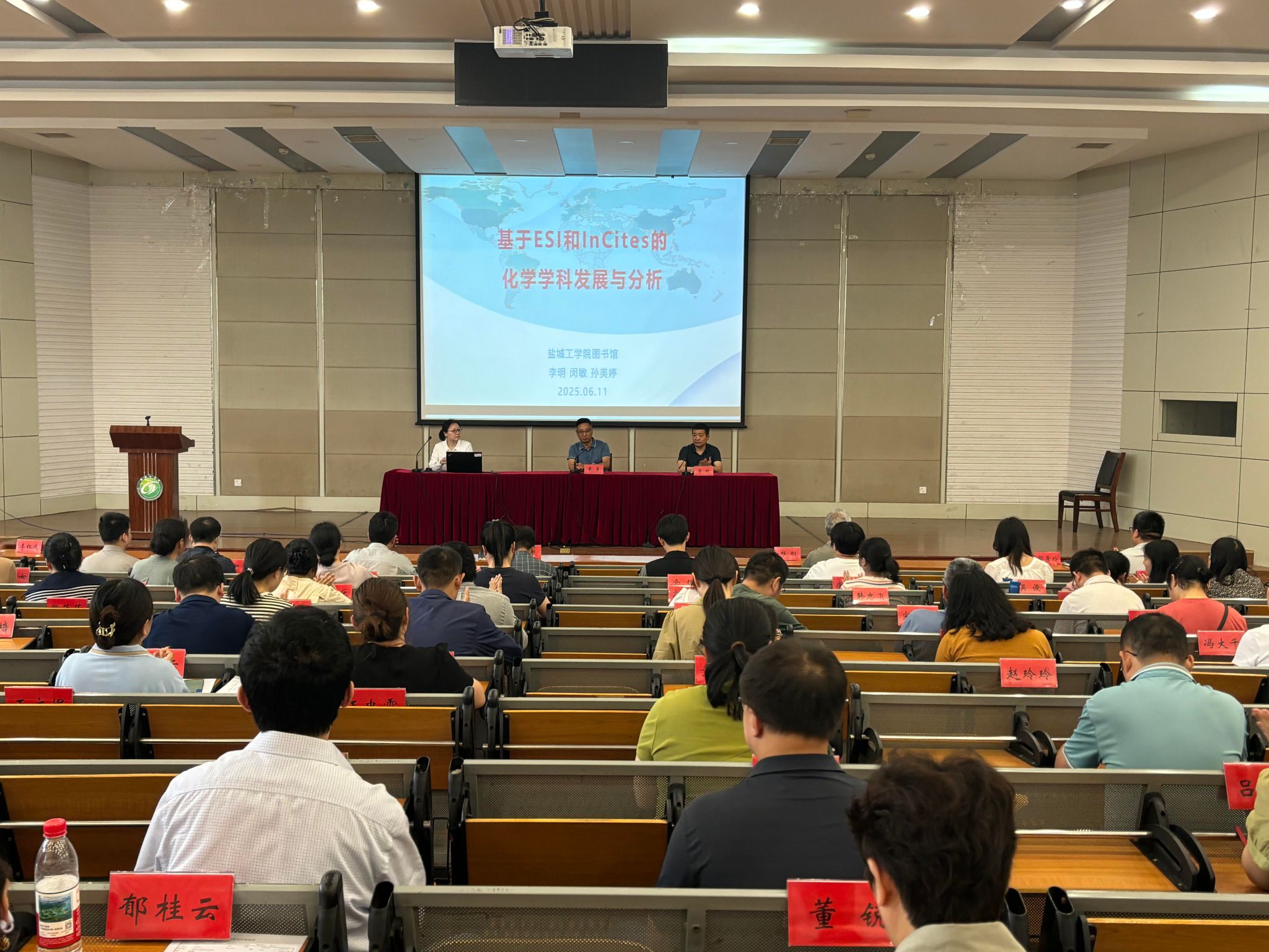 6月11日下午,图书馆联合化学化工学院在北校区化工楼报告厅举办ESI学科建设专题讲座,图书馆闵敏老师作《基于ESI和InCites的化学学科发展与分析》专题报告,图书馆馆长李明就化学学科多年来ESI数据趋势及具体发展对策进行详细说明。化学化工学院院长戴勇主持,化学化工学院全体教师参加。