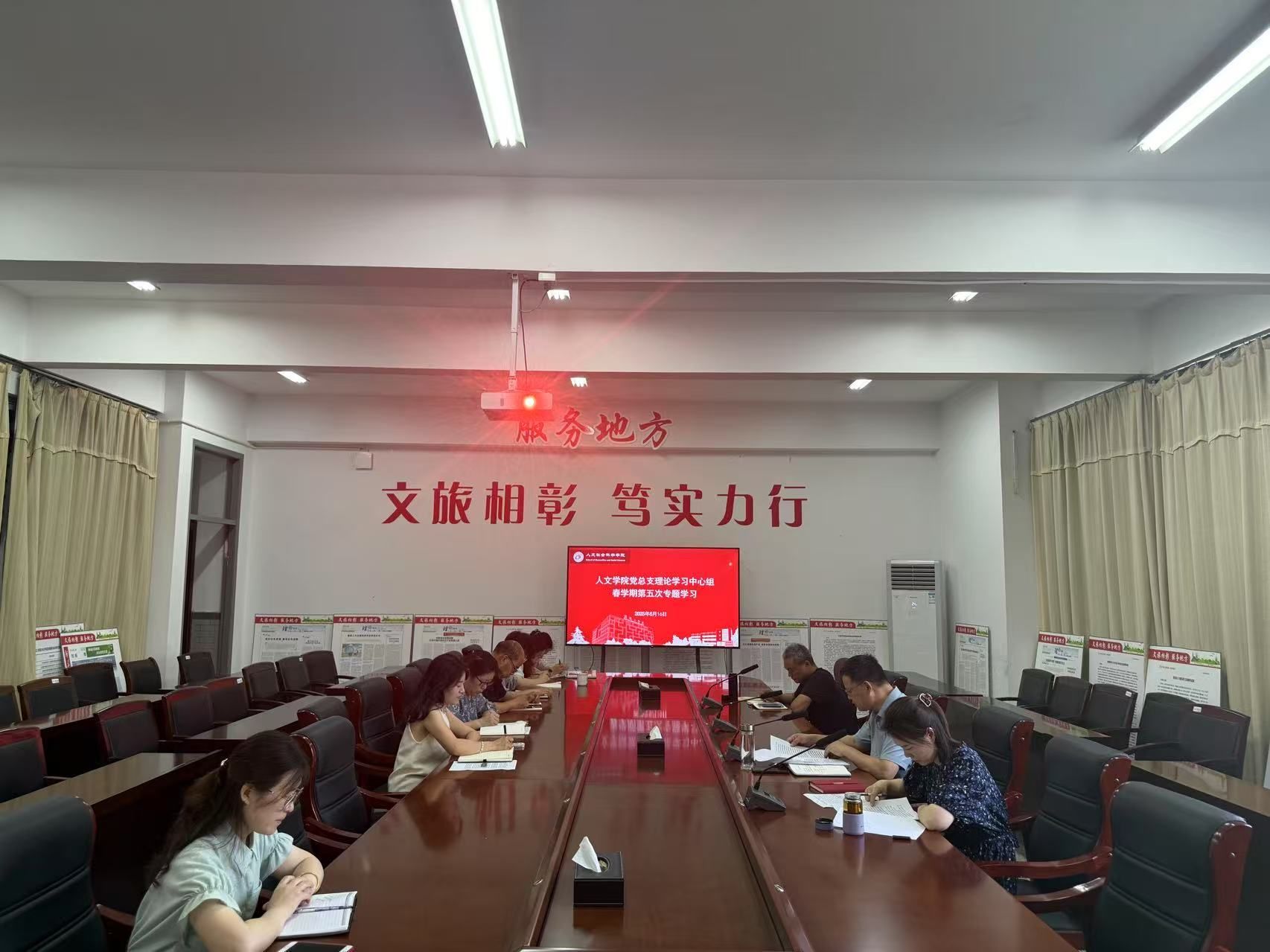 6月16日上午,在南校区仁和楼A304会议室,人文学院党总支理论学习中心组召开2025年春学期第五次集体学习会。会议由学院党总支书记何登溢主持,学院中心组成员参加。