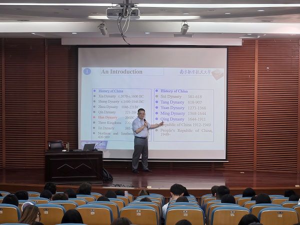 6月18日下午,南京航空航天大学外国语学院教授、博士生导师范祥涛应邀在润美楼报告厅为我校全体国际夏令营成员、留学生及外国语学院英语专业学生开展题为《中欧文化交流两千年》的全英文学术讲座。