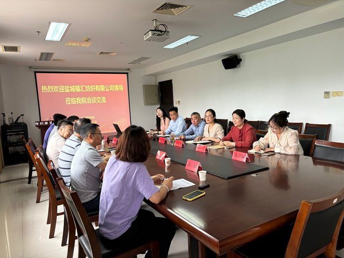6月12日,福田实业(集团)有限公司执行董事兼副总裁、盐城福汇纺织有限公司董事长兼总经理李刚率领企业高管团队到访纺织服装学院。学院党总支书记宋孝浜、院长王春霞、各专业及学工办负责人参加座谈会。双方就产学研合作、人才培养、企业奖学金设立等事宜展开深入交流。