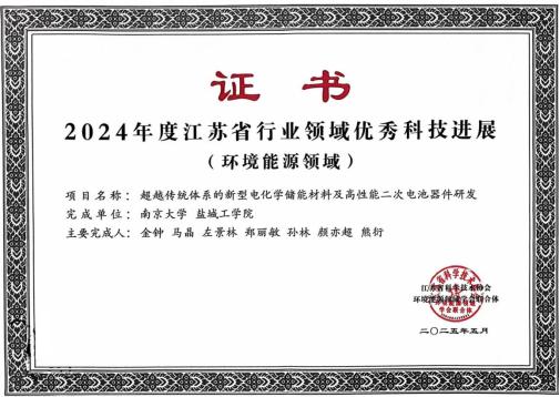 近日,在2024年度江苏省行业领域科技进展遴选中,我校孙林博士团队参与的《超越传统体系的新型电化学储能材料及高性能二次电池器件研发》项目取得佳绩,研究成果入选2024年度江苏省行业领域优秀科技进展(环境能源领域)。2024年度江苏省行业领域优秀科技进展是江苏省科学技术协会根据《江苏省行业领域十大科技进展遴选工作办法》《2024年度江苏省行业领域十大科技进展遴选工作方案》,经提名、形式审查、初评、综合评审等程序遴选确定,体现了江苏的最新科技发展成就。