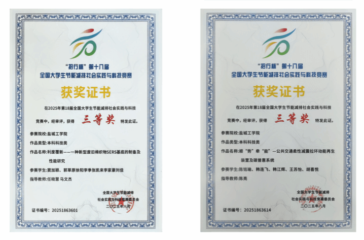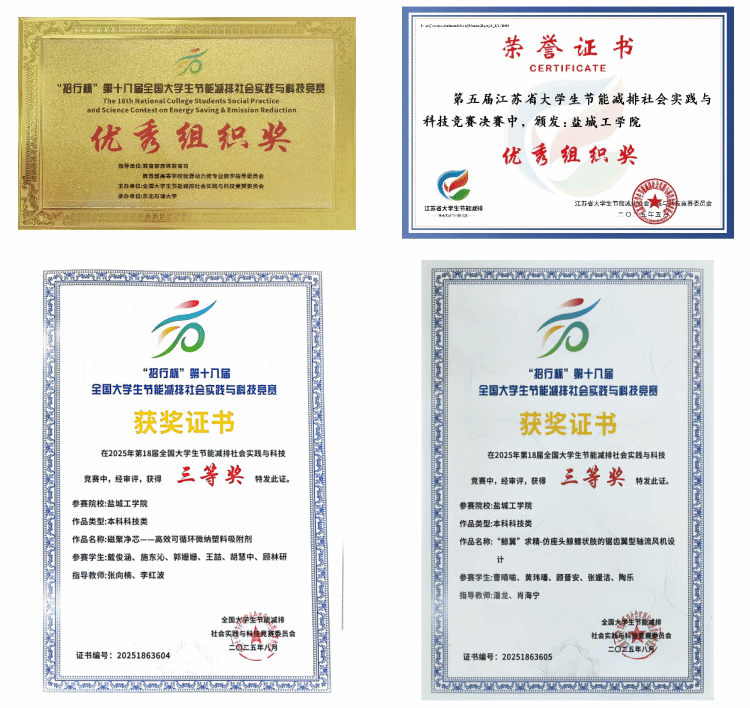 近日,“招行杯”第十八届全国大学生节能减排社会实践与科技竞赛决赛在东北石油大学落下帷幕。我校学子以出色的创新能力和实践表现,在本届节能减排大赛中脱颖而出,斩获4项三等奖,盐城工学院荣获优秀组织奖。