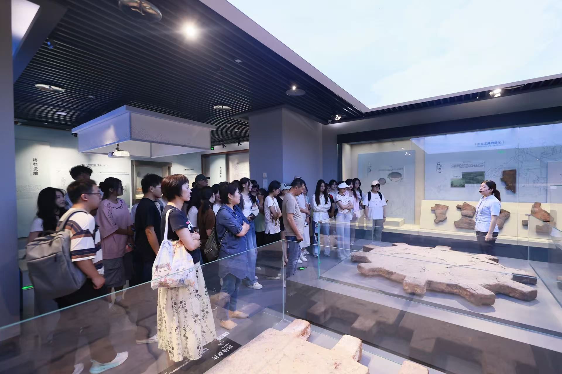在考察调研环节,师生们参观了海盐博物馆的基本陈列与专题展览,系统了解了海盐的历史文化、生产工艺以及盐城地域文化的独特魅力。同学们结合专业所学,从艺术设计角度进行了素材收集和采风。