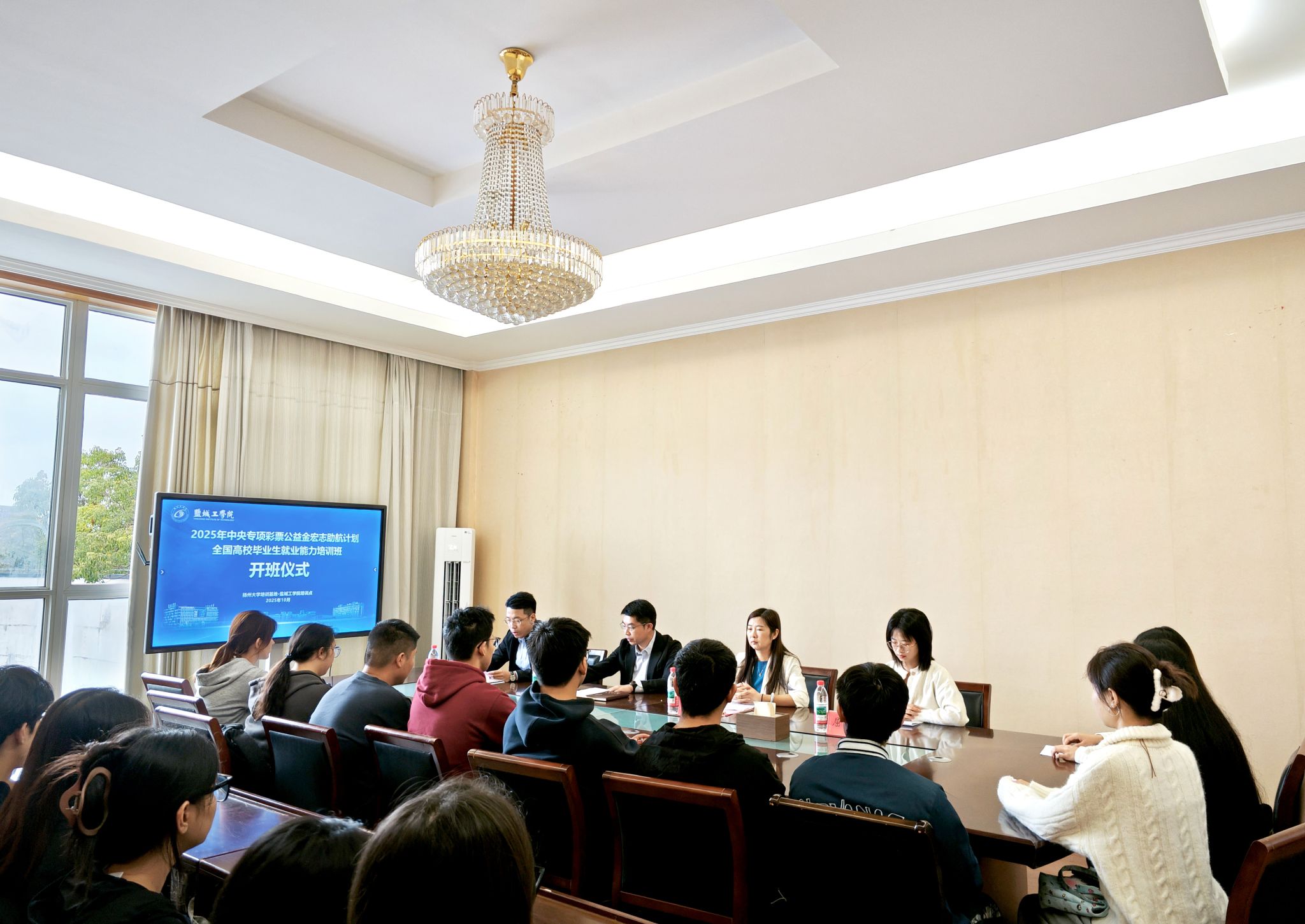 为全面落实教育部“宏志助航计划”高校毕业生就业能力培训项目,10月18日上午,2025年教育部“中央专项彩票公益金宏志助航计划”全国高校毕业生就业能力培训班在我校希望大道校区润美楼A311顺利开班,党委学工部副部长、学生处副处长、招生与就业创业指导处副处长阳韬,扬州大学招生就业处就业管理服务科科长李敏,“宏志助航”专职教师团队及50余名参训学员参加了开班仪式。仪式由学校就业创业指导中心主任韩金原主持。