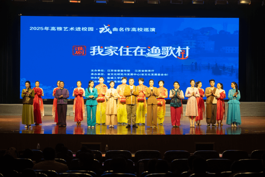 10月22日,由江苏省委宣传部、江苏省教育厅联合主办的“高雅艺术进校园”活动在希望大道校区行政楼报告厅正式开演,我校700余名师生共同观看了由盐城市射阳县淮剧团带来的现代淮剧《我家住在渔歌村》。