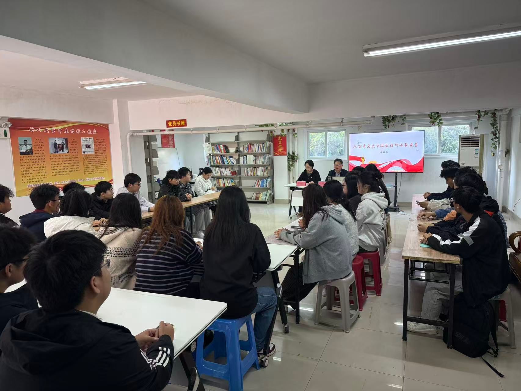 为进一步深化“一站式”学生社区综合管理模式建设,充分发掘和发挥“五老”队伍的独特优势和作用,10月29日下午,在希望大道校区“砼心苑”一站式学生社区,“一站式”学生社区党委邀请校关工委副主任徐报喜,开展“一站式”学生社区“五老五助力”行动暨党史专题讲座。学生处副处长马晓英主持。各二级学院大一、大二年级入党积极分子及学生党员代表参加。