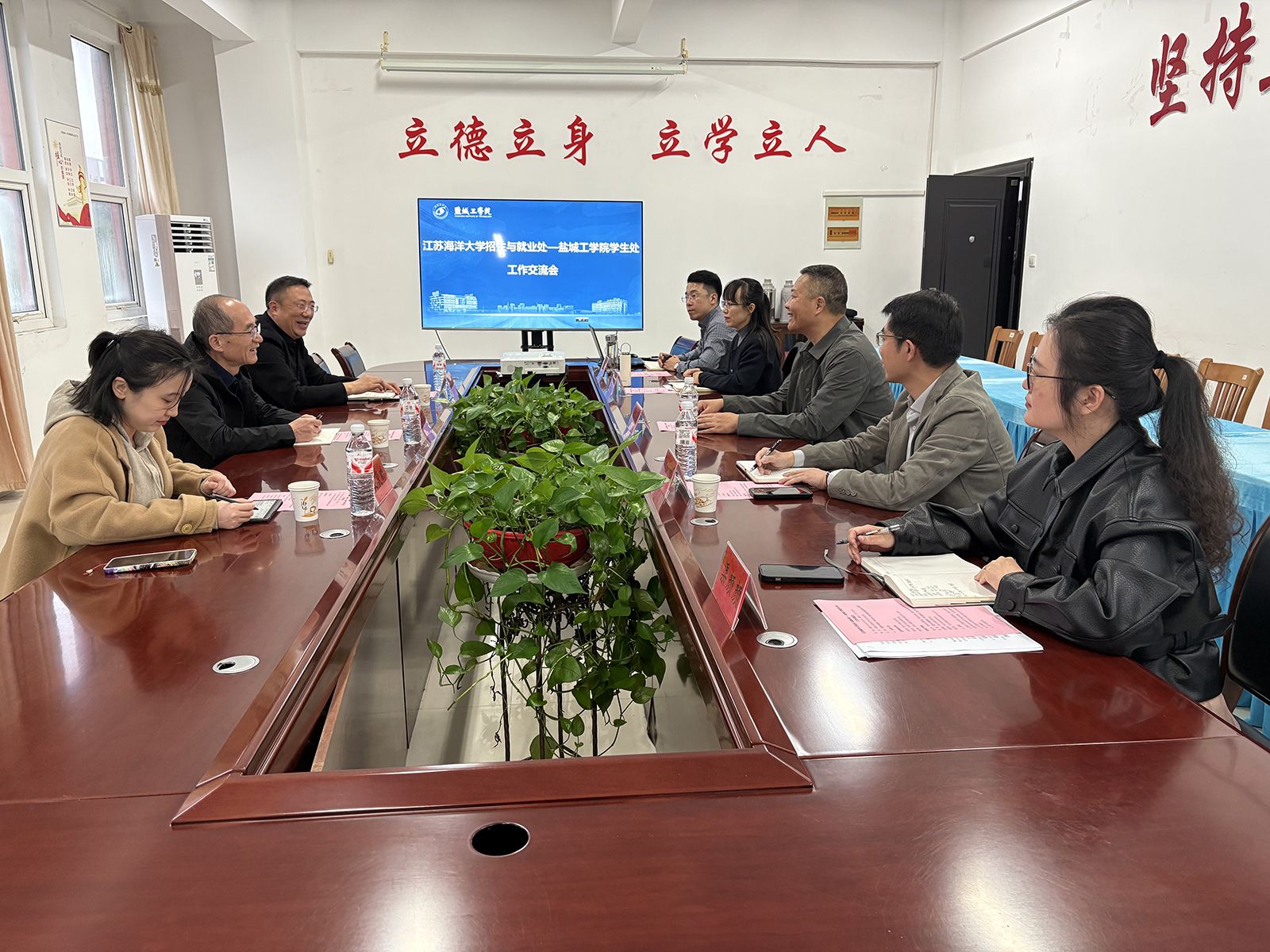 10月30日下午,江苏海洋大学招生与就业处处长马恒通、副处长骆海宏,就业指导中心主任耿盈晴一行3人到我校学生处调研交流。学生处处长杨汉华,副处长阳韬热情接待,相关科室同志参加活动。杨汉华主持会议。