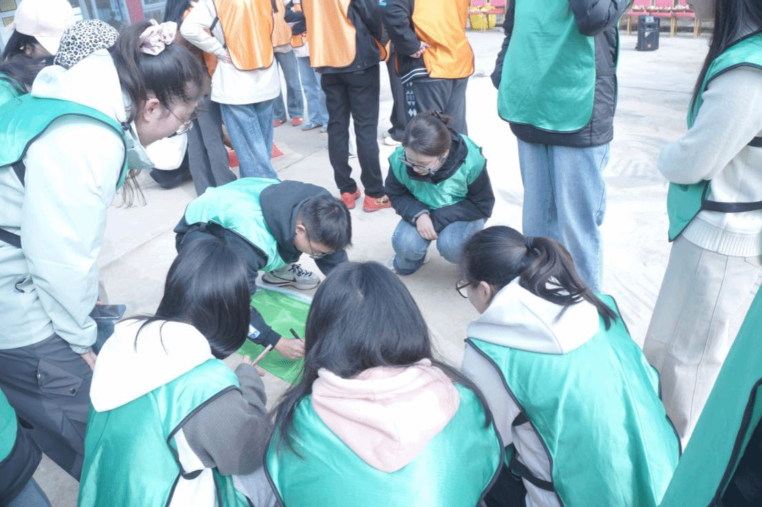 抵达首站老首乌生态园后,上午的活动正式拉开帷幕,通过设置“破冰+团队文化建设”环节,同学们打破隔阂,快速分组并推选队长,共同设计队名、队形、队徽与队歌,在互动中迅速建立信任。随后依次开展“合力筑塔”“极速60秒”“硕果累累”等三大主题项目。“合力筑塔”中,同学们拉紧绳头控制塔钩,统一指挥、分工协作完成模型搭建;“极速60秒”里,大家在规定时间内有序整理数字卡片,锻炼了沟通效率与全局观念;“硕果累累”项目通过竞猜水果的形式,进一步提升了团队应对挑战的能力。