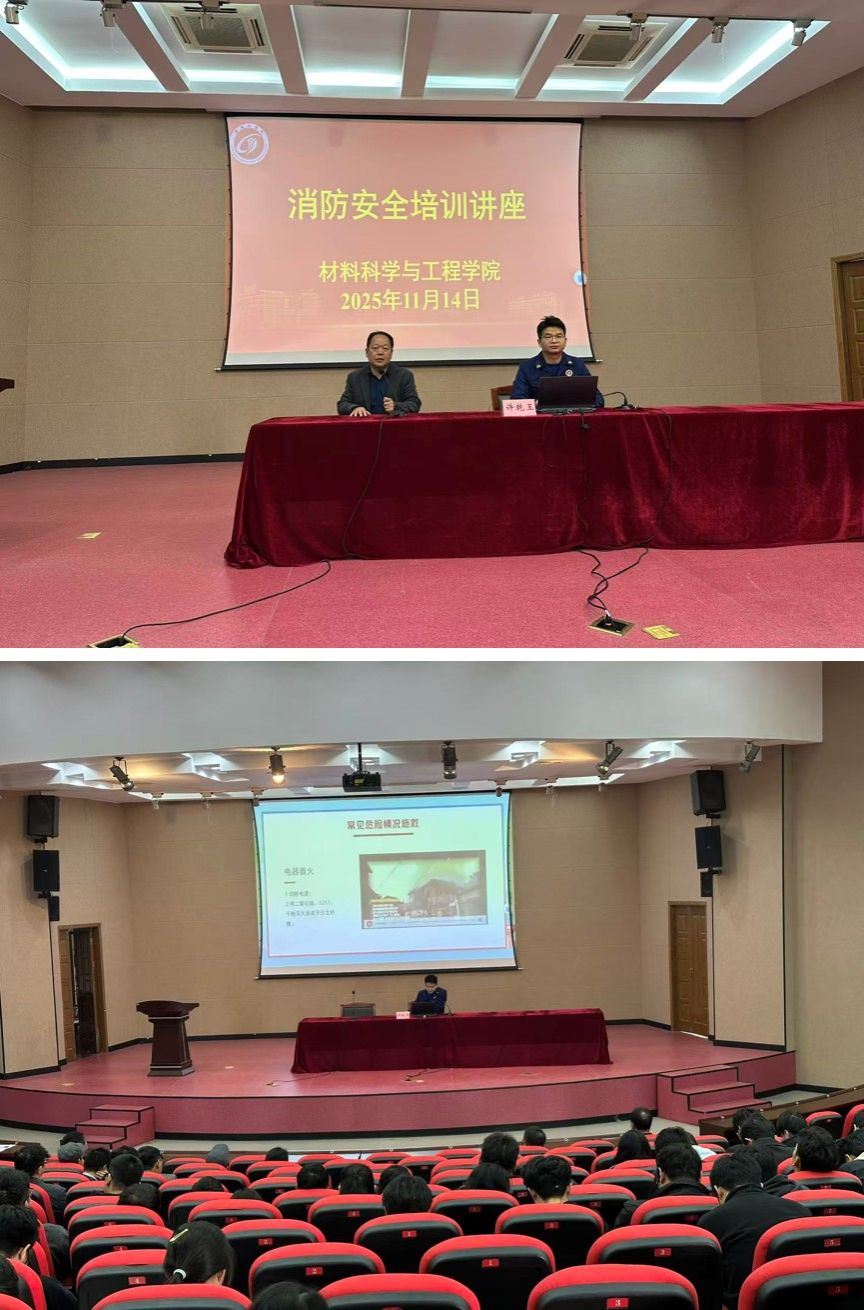 为切实增强师生消防安全意识与火场自护自救能力,11月14日下午,材料学院在北校区五四报告厅举办消防安全培训讲座。院长罗驹华主持会议,学院领导、全体实验室负责人及本科生和研究生代表共同参与。
