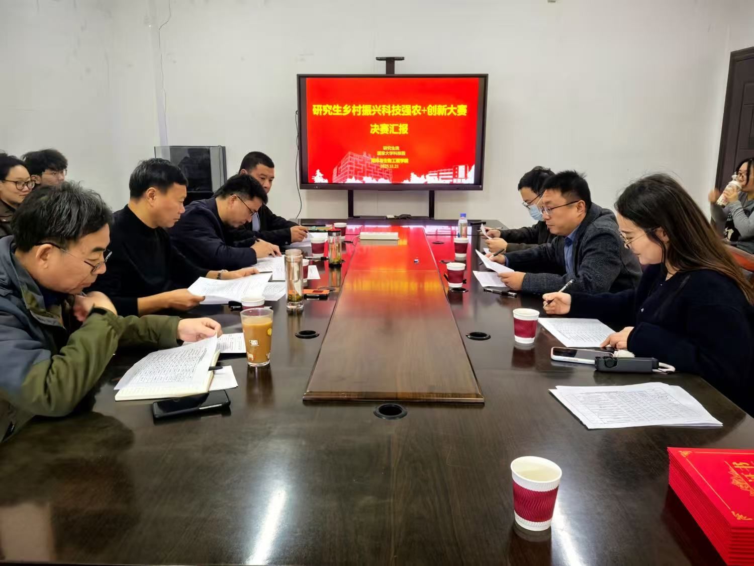 为深入贯彻乡村振兴战略,强化科技赋能农业发展的核心作用,由研究生院主办,国家大学科技园与海洋与生物工程学院共同承办的“第一届研究生乡村振兴科技强农+创新大赛”决赛于11月21日下午在学院会议室410成功举办。决赛评委由国家大学科技园主任赵云峰,研究生院副院长诸华军,海生学院党总支书记高留才、院长彭斌、副院长齐志涛、研究生工作秘书杜骁轩、学科工作秘书潘明珠博士共同组成。本次大赛由齐志涛主持。