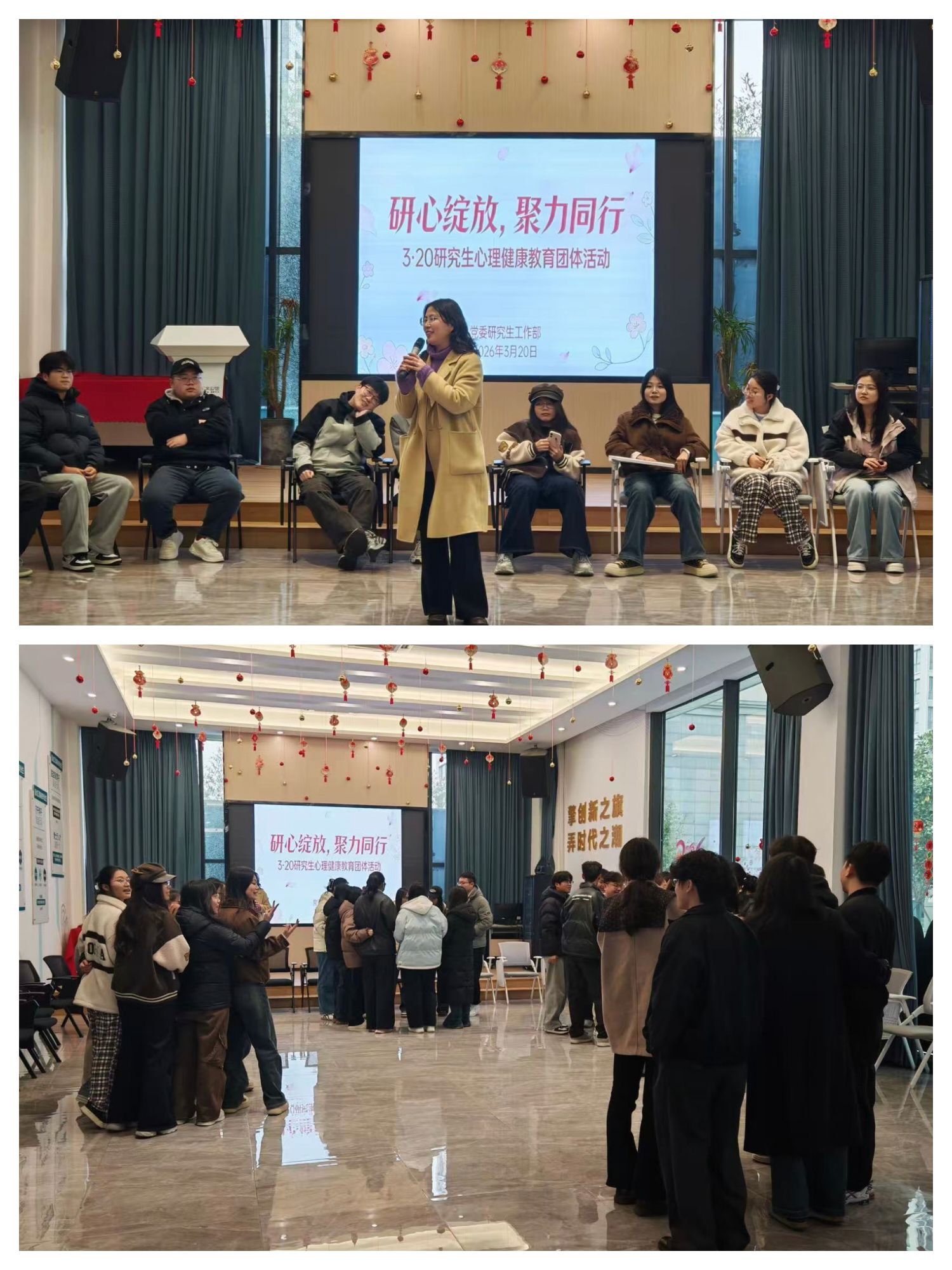 为推动研究生群体的交流互动,锻炼团队协作与沟通能力,培养积极乐观的健康心态,助力提升学习和科研效率,3月20日下午,党委研工部在盐龙湖校区研究生一站式社区举办了“研心绽放 聚力同行”3・20研究生心理健康教育团体活动。近50名研究生及研究生辅导员参加。
