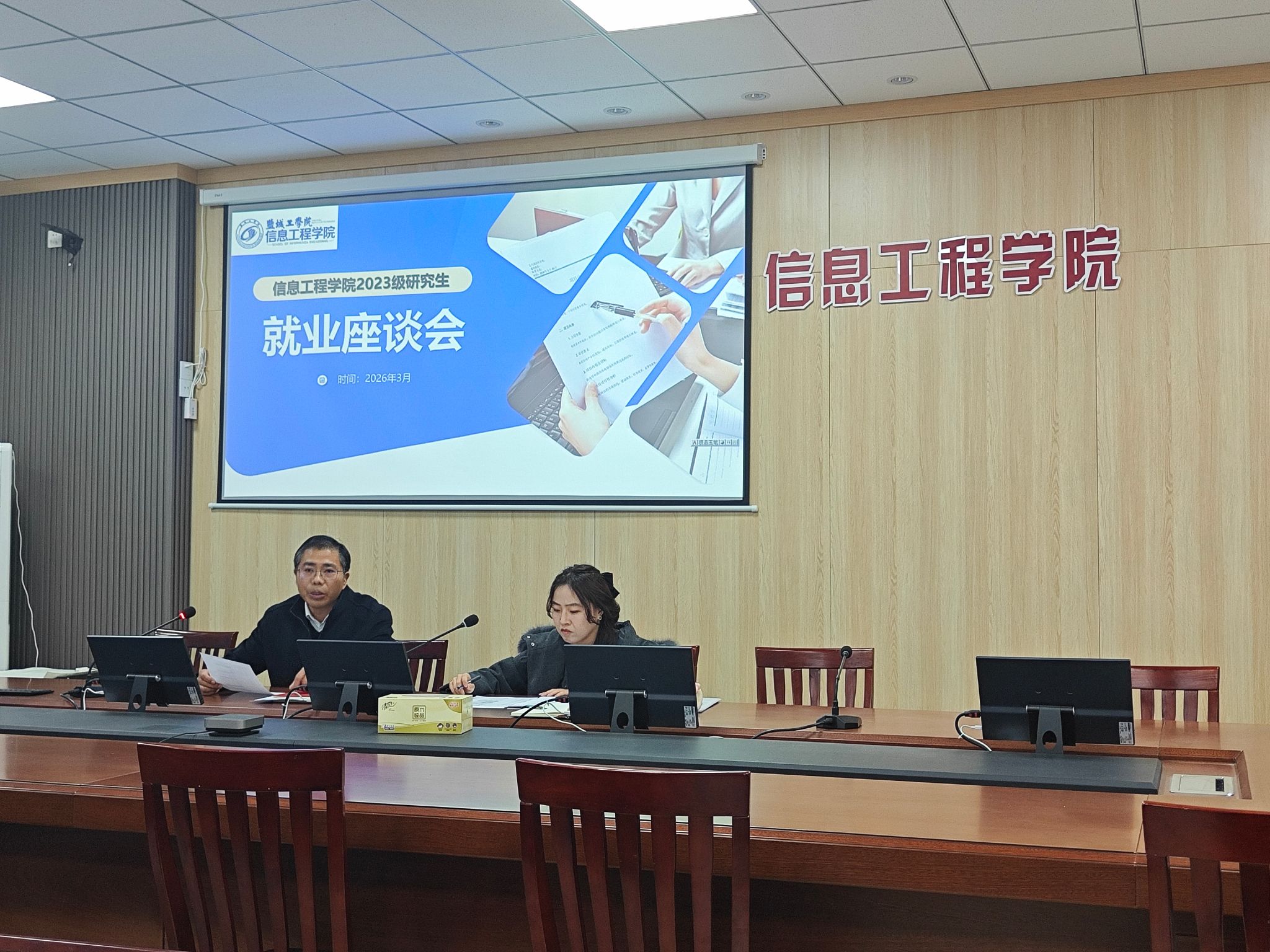 为扎实推进2026届研究生就业工作,精准解答求职困惑、强化职业规划引导,3月31日上午,信息工程学院于怀德楼B410会议室召开研究生就业专题座谈会。学院党委副书记王源、研究生辅导员许玥出席会议,全体2024级研究生参会。会议聚焦当前就业新形势,围绕就业形势研判、求职策略制定、在校期间管理及多元发展路径等维度展开深入交流,旨在为研究生就业创业提供精准化指导。