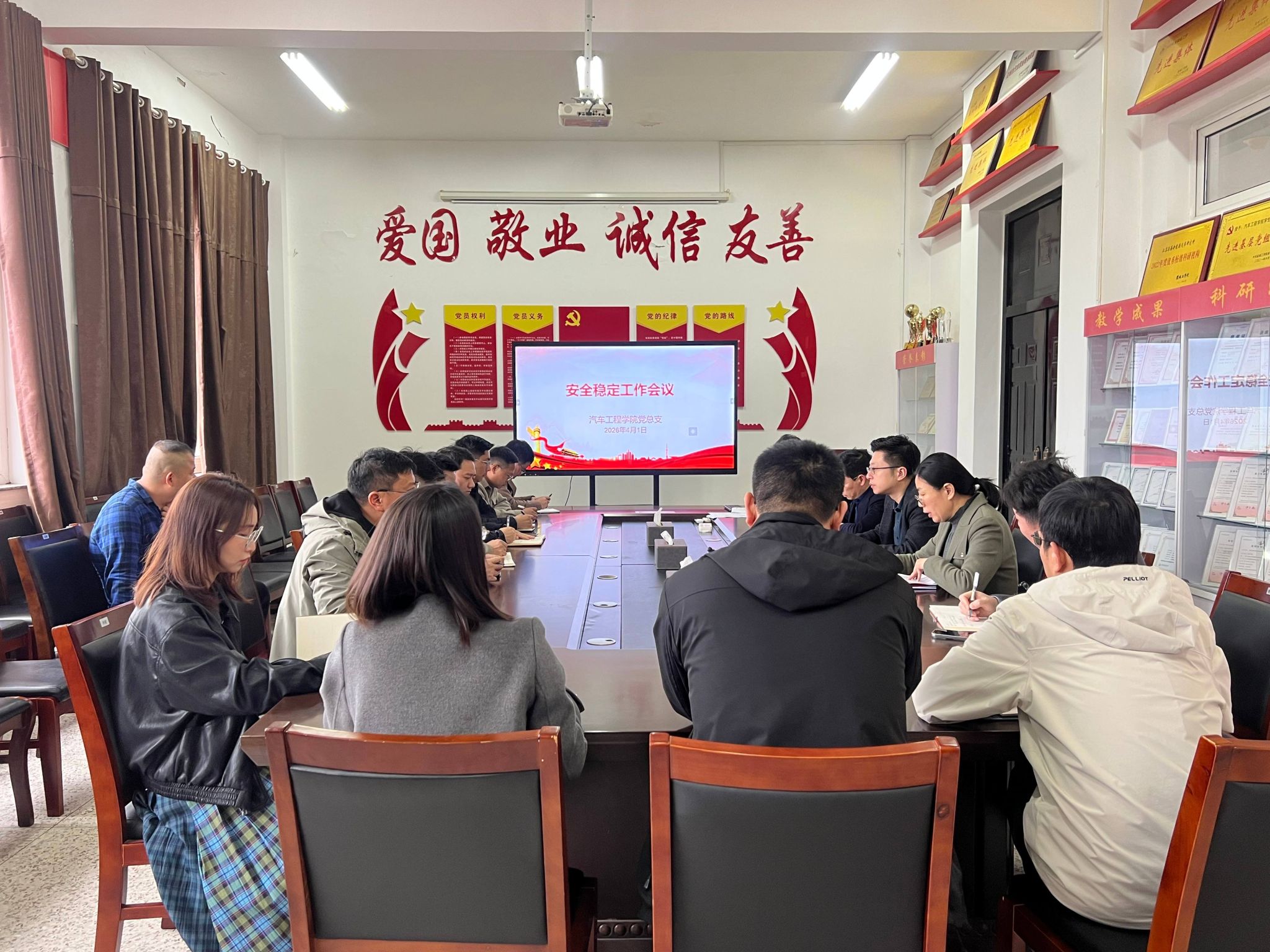 4月1日下午,汽车工程学院在机械馆A323会议室召开安全稳定工作会议。会议由学院党总支书记陈青主持,学院全体科级以上干部、党支部书记、专业系主任、实验中心主任参会。