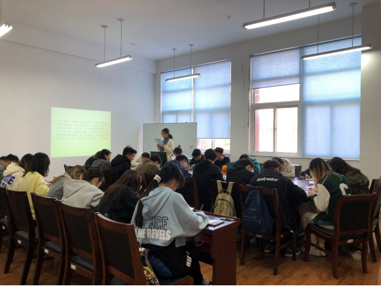 4月13日下午,在南校区博学楼B302教室,人文学院组织青年团员、党员发展对象开展“百年党史,经典诵读”党史学习教育。学院团委负责人主持。