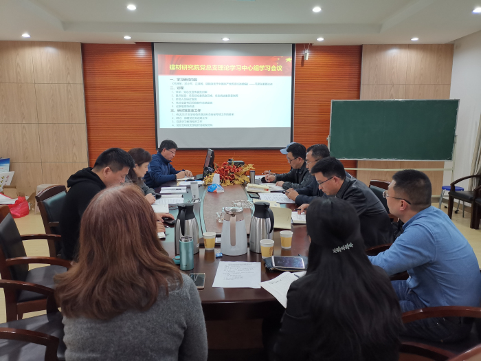 4月22日下午,建材研究院党总支在北校区知达楼AE209会议室召开党史学习教育第三次专题学习会议,党总支副书记邓育新主持,副院长刘军领学,院中心组全体成员参加。