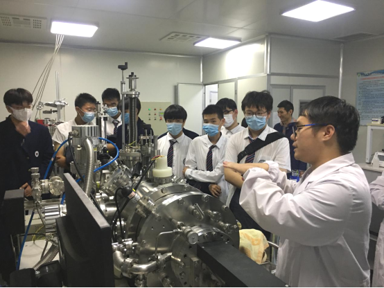 在原子团簇平台,樊乐乐博士和学生为大家讲解了原子团簇的基本概念和制备原理,介绍了张勤芳教授团队自主搭建的具有国际先进水平的“高分辨质量选择团簇束流实验装置及在线催化测试系统”,为初学物理课程的学生拓宽了眼界。