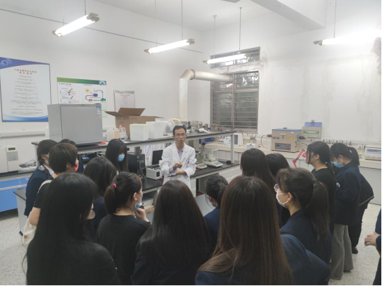 张文惠博士向学生介绍新型环保重点实验室的概况和发展理念