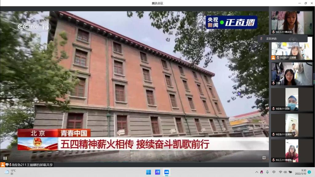 5月10日上午,化学化工学院团委组织学生会、团委学生干部在201会议室集中观看庆祝中国共产主义青年团成立100周年大会,其余学生以班级为单位组织线上观看。