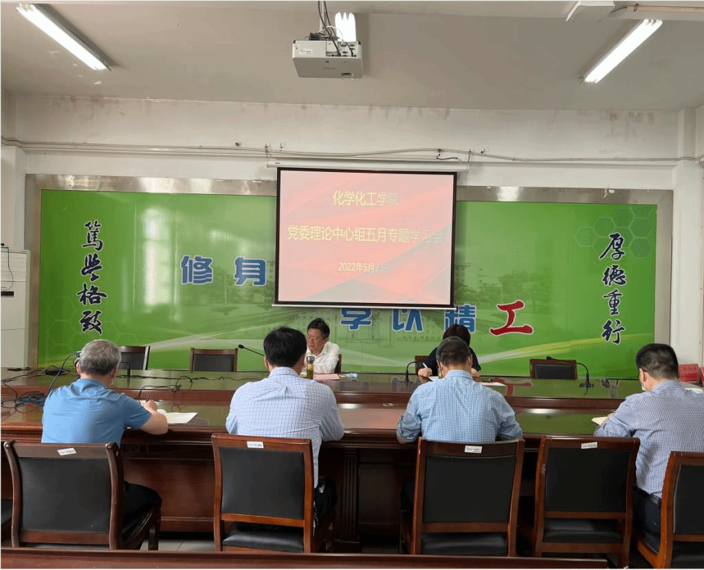 5月23日上午,化学化工学院在201会议室召开党委理论中心组集中学习,院党委书记高健主持,校党委第一巡学旁听组组长张建中,成员王丽坤到会指导,学院党委理论学习中心组全体成员参会。