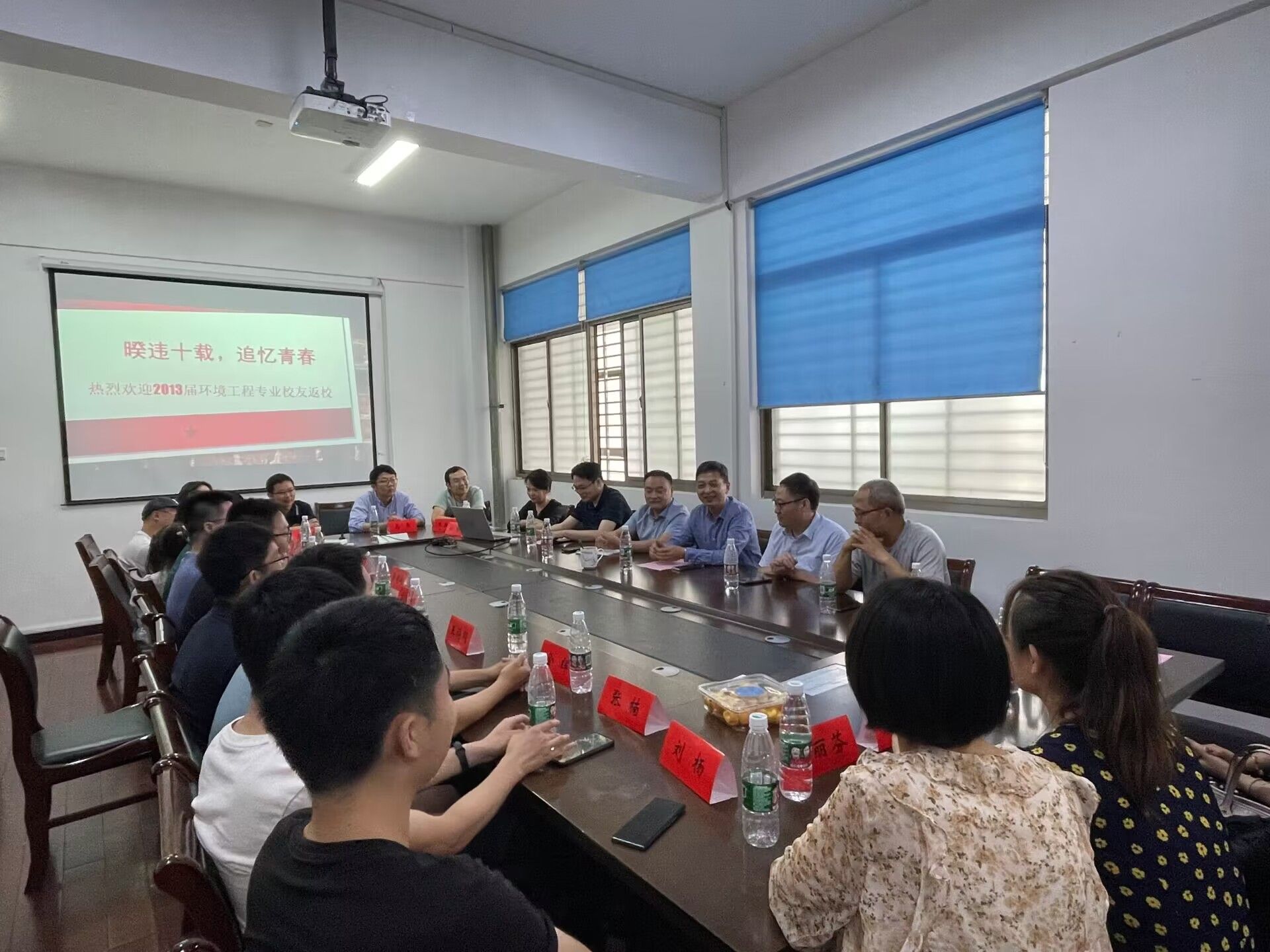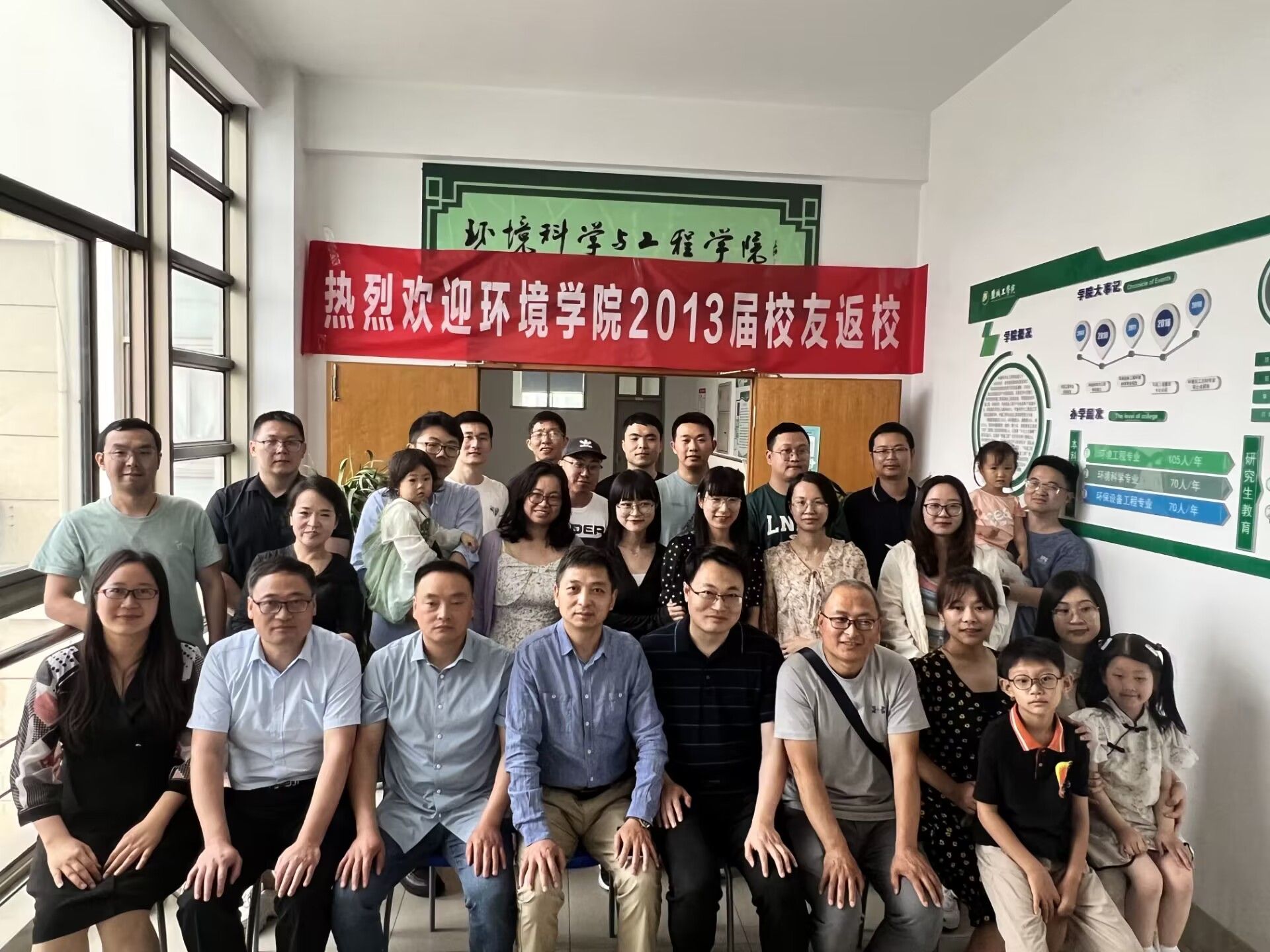 为加强校友与母校之间的情感纽带联系, 6月17日,环境学院举办2013届校友毕业十周年返校交流活动。20余位校友代表齐聚一堂, 共叙师生情谊,共谋发展篇章。环境学院党总支书记陈阳、副院长杨百忍,材料学院党委副书记朱凌,环境学院金建祥、崔立强老师、2013届校友辅导员沈丹参加活动。
