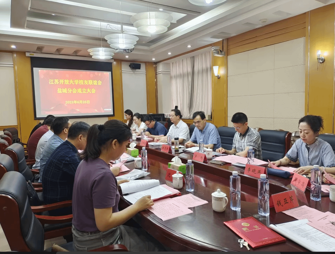 6月26日下午,江苏开放大学校友联谊会盐城分会在北校区图书馆301室正式成立。江苏开放大学党委常委、副校长尤佳春,学生工作处处长、校友联谊会办公室主任刘涛,艺术学院党总支副书记张洁等到会指导,我校工会副主席吴旭,继续学院院长、盐城开放大学校长陈志华,党政办公室主任钱亚芹及部分校友理事会代表参加会议。会议由继续教育学院副院长、盐城开放大学副校长李晓燕主持。