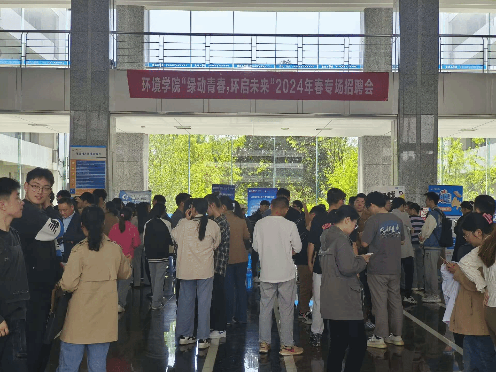 为深入学习贯彻党的二十大精神,认真落实党中央、国务院“稳就业”“保就业”决策部署, 4月25日,环境学院在北校区化工楼一楼大厅开展“绿动青春,环启未来”2024年春专场招聘会。活动邀请校招生与就业创业指导处处长徐新华、副处长王益群到场指导,环境学院领导班子成员、学工办、分团委负责同志、全体导师、2024届本科毕业生与研究生参加。