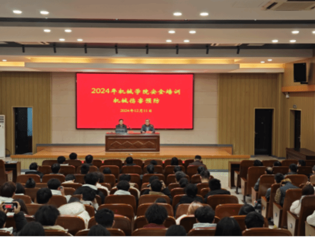 12月11日,实验室建设与设备管理处联合机械优集学院,在南校区机械馆报告厅举办2024年机械伤害预防安全主题教育活动,旨在深化师生对机械操作与实验安全的认知,筑牢安全防线,降低事故发生的可能性。设备处副处长姜瑞雨主持会议。设备处、机械学院相关领导,机械学院实验中心、模具中心、工培中心负责人、实验指导教师,2024级全体新生和机械学院新进教师等参加。