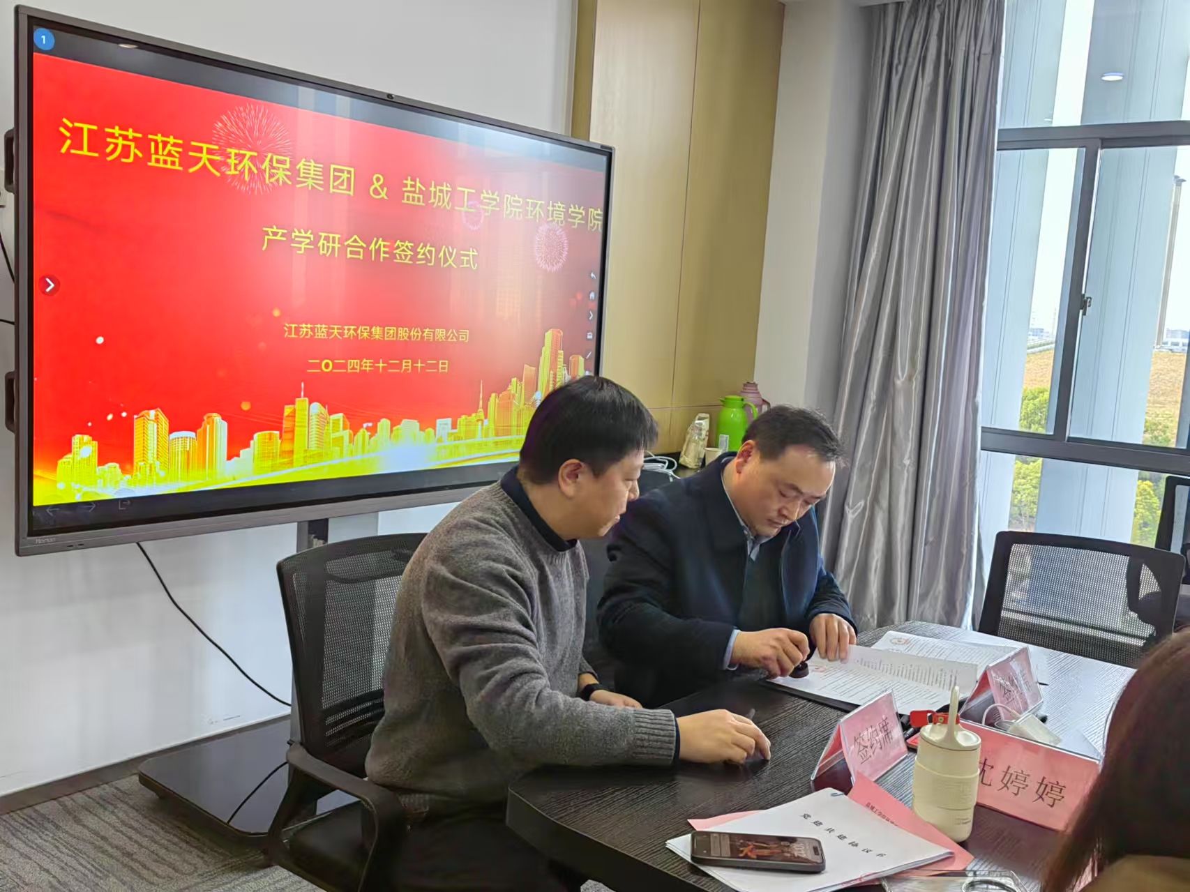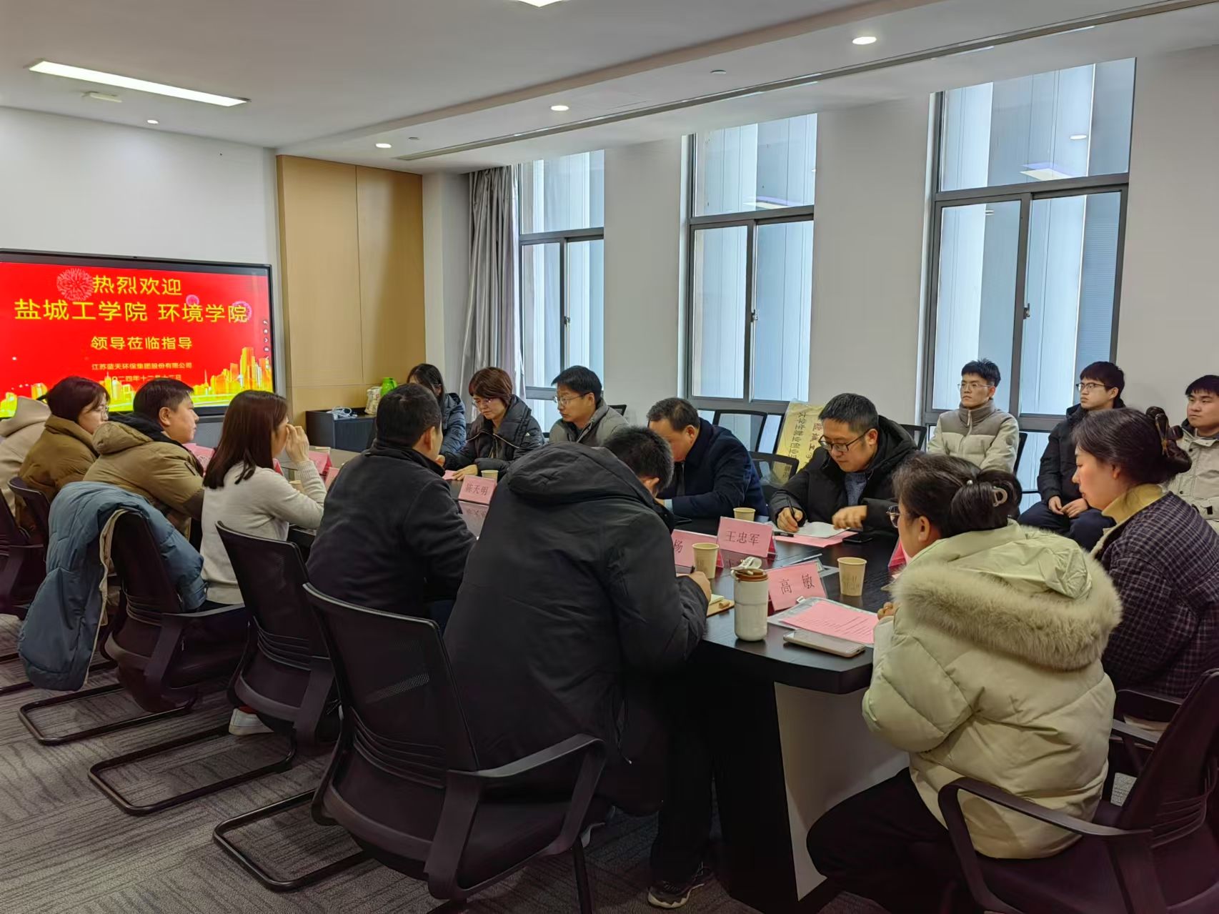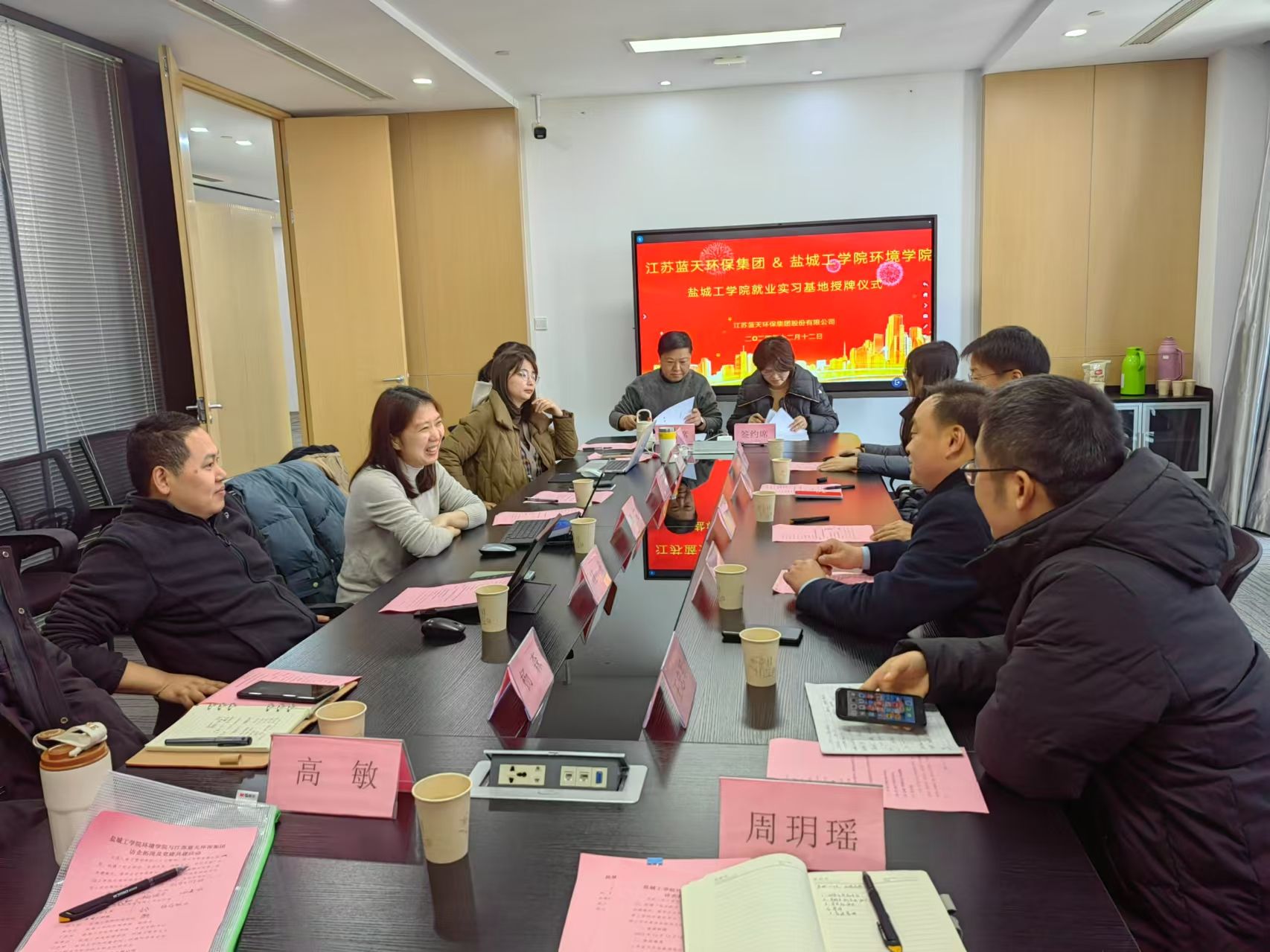 12月12日,为进一步发挥党建引领作用,深入贯彻落实学校“访企拓岗促就业”专项行动工作要求,推进校企深度融合发展,拓展学生就业渠道,环境学院院长陈天明带队到江苏蓝天环保集团开展“访企拓岗促就业”专项行动暨党建共建活动。环境学院副院长杨百忍、党总支副书记王丽坤,江苏蓝天环保集团常务副总经理谭琨、环保技术部部长庄泉、人事行政总监刘歆成出席。学院博士和学生代表、企业相关部门负责人参加。