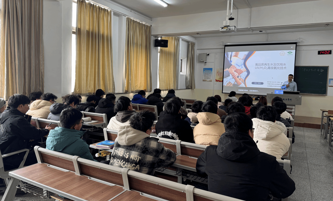 2月17日,环境学院邀请哈尔滨工业大学(深圳)韩京龙教授走进环保设备工程专业净水工艺与设备课堂,为环保设备工程专业22级的同学带来了一场关于高品质再生水及饮用水UV/H2O2高级氧化技术的讲座。此次讲座是环境学院“名师进课堂”系列活动之一,旨在拓宽学生的学术视野,提升专业素养,并为即将参加考研的同学们提供宝贵的指导和建议。