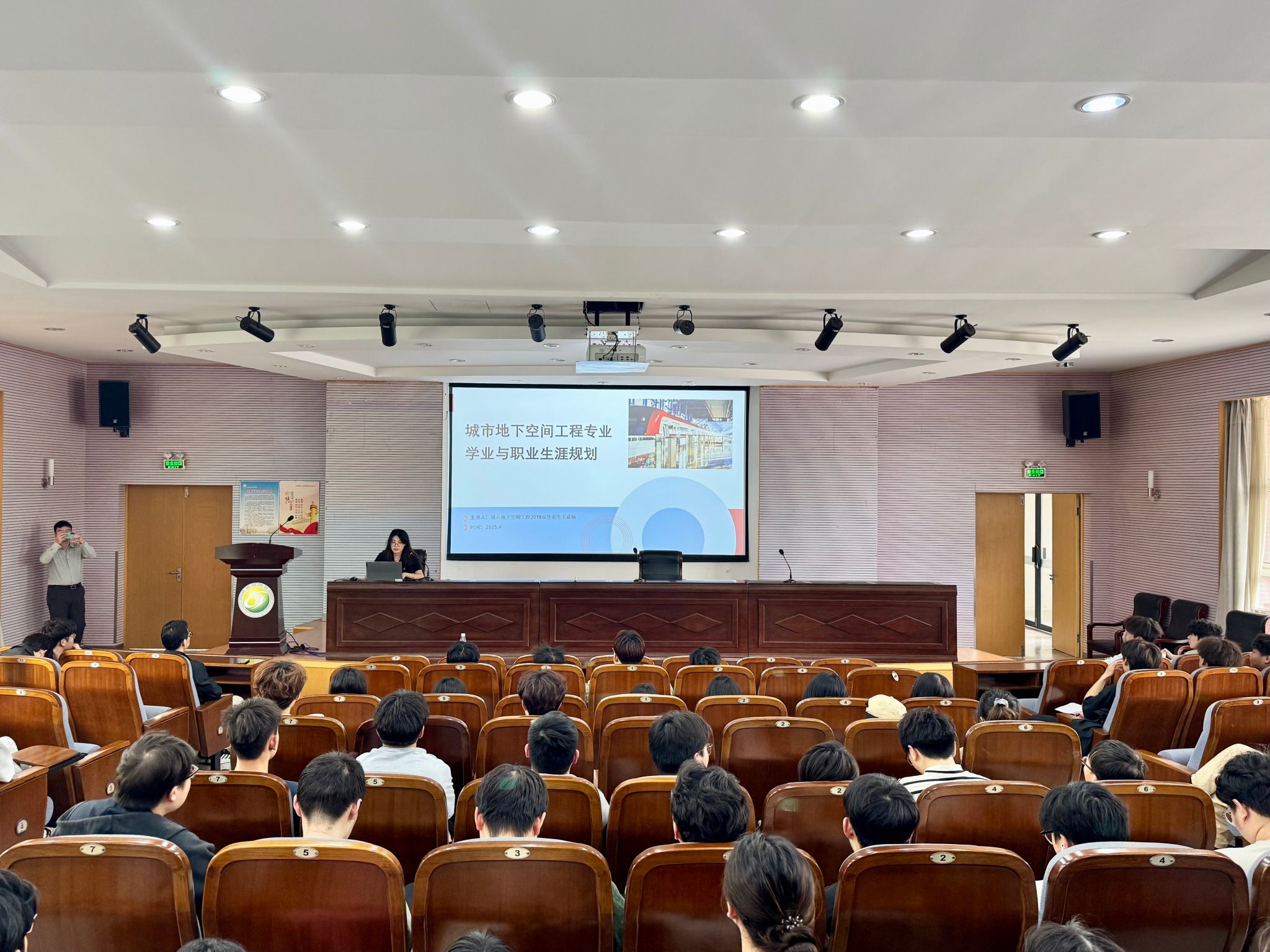4月29日,土木工程学院邀请城市地下空间工程专业2019届优秀校友、悉地(苏州)勘察设计顾问有限公司王盛楠在土木馆报告厅作学业与职业生涯规划报告,报告会由地下工程系主任殷勇主持,学院副院长李富荣,城市地下空间工程专业教师、辅导员,全体城市地下空间工程专业学生等100余人参加。
