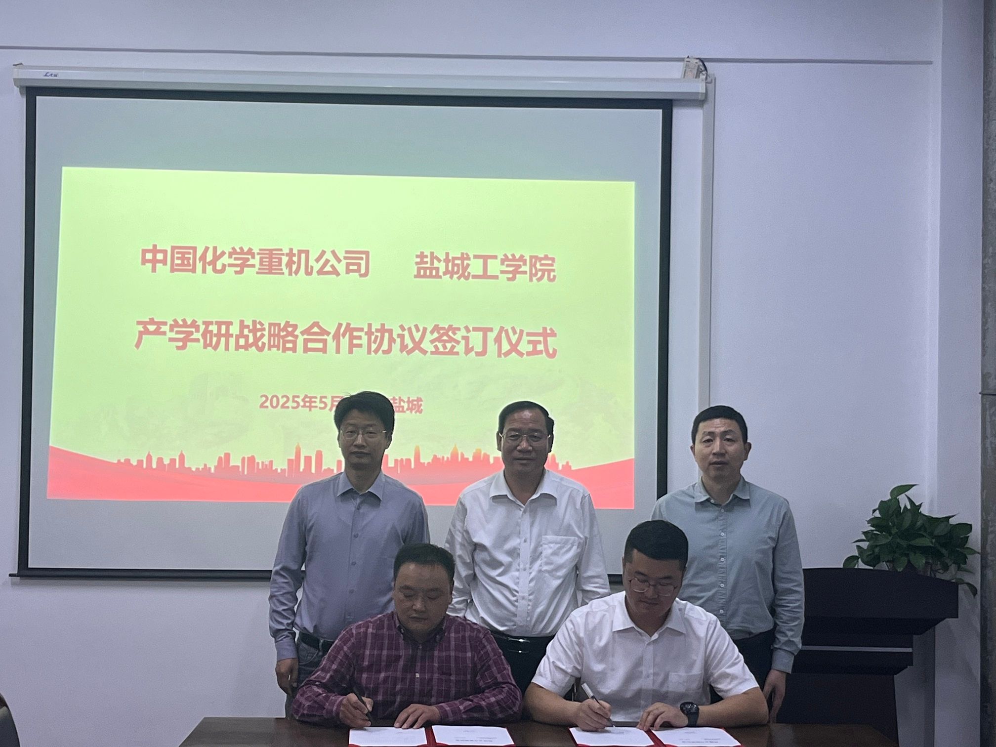 陈天明对张万虎一行的到访表示热烈欢迎,详细汇报了学院办学和科学研究的具体情况。张万虎介绍了中国化学工程重型机械化有限公司的发展历程、重点工程及未来愿景。双方围绕产学研协同发展这一主题,展开了交流讨论,并就科技成果转化、项目联合攻关、人才培养基地共建、职业能力提升平台打造等达成多项合作共识。双方签署产学研战略合作协议,未来将持续深化合作,构建校企人才共育、资源共享的长效合作机制,共同推动环保产业的技术革新与人才培养。