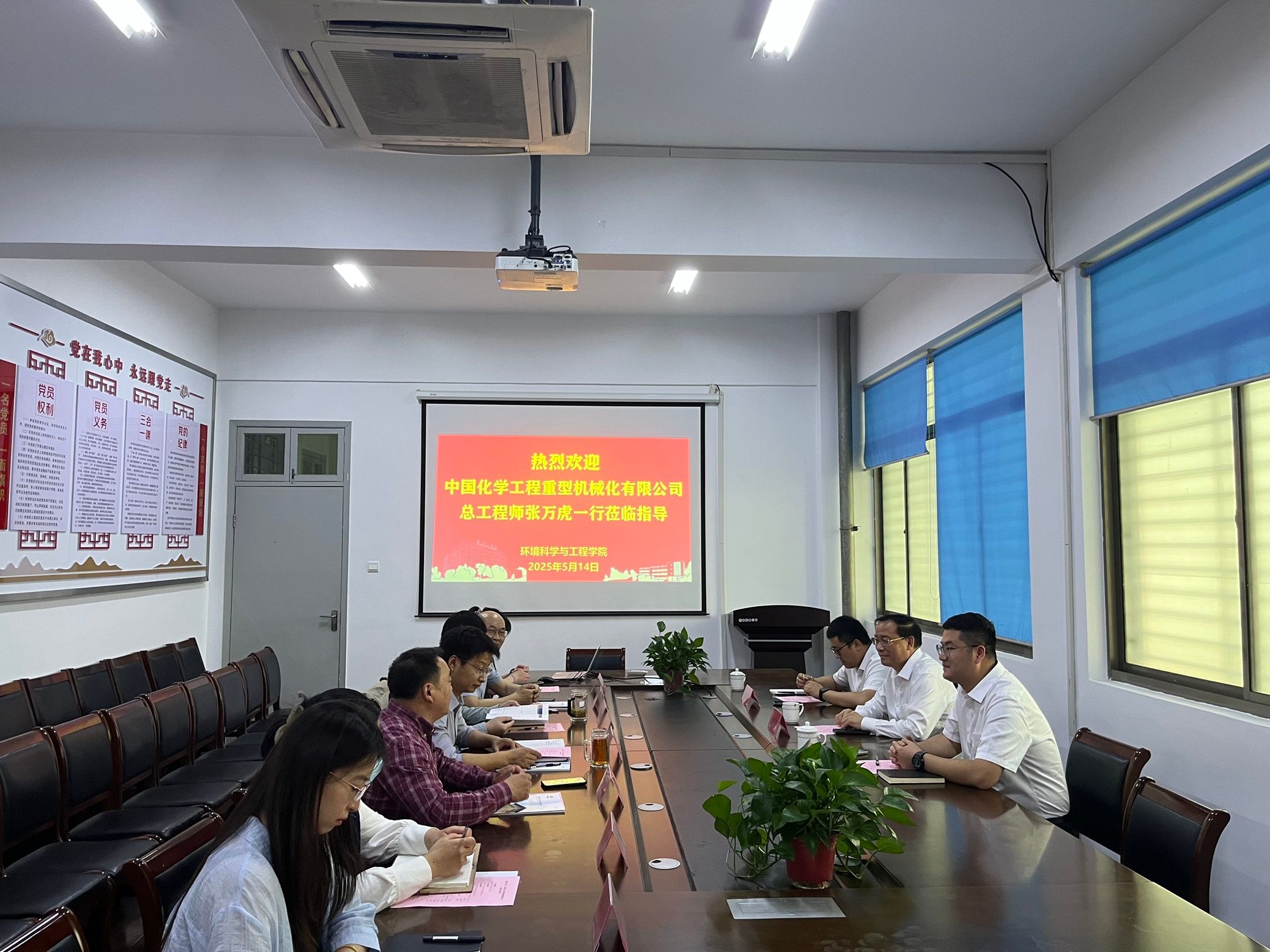5月14日下午,中国化学工程重型机械化有限公司总工程师张万虎、项目管理部副部长曹金山、技术部副部长裴晓辉一行莅临环境学院,就科技成果转化、项目联合攻关、产学研深度合作等展开调研交流活动。环境学院院长陈天明、党总支书记孟鑫、副院长杨百忍等学院领导陪同调研。