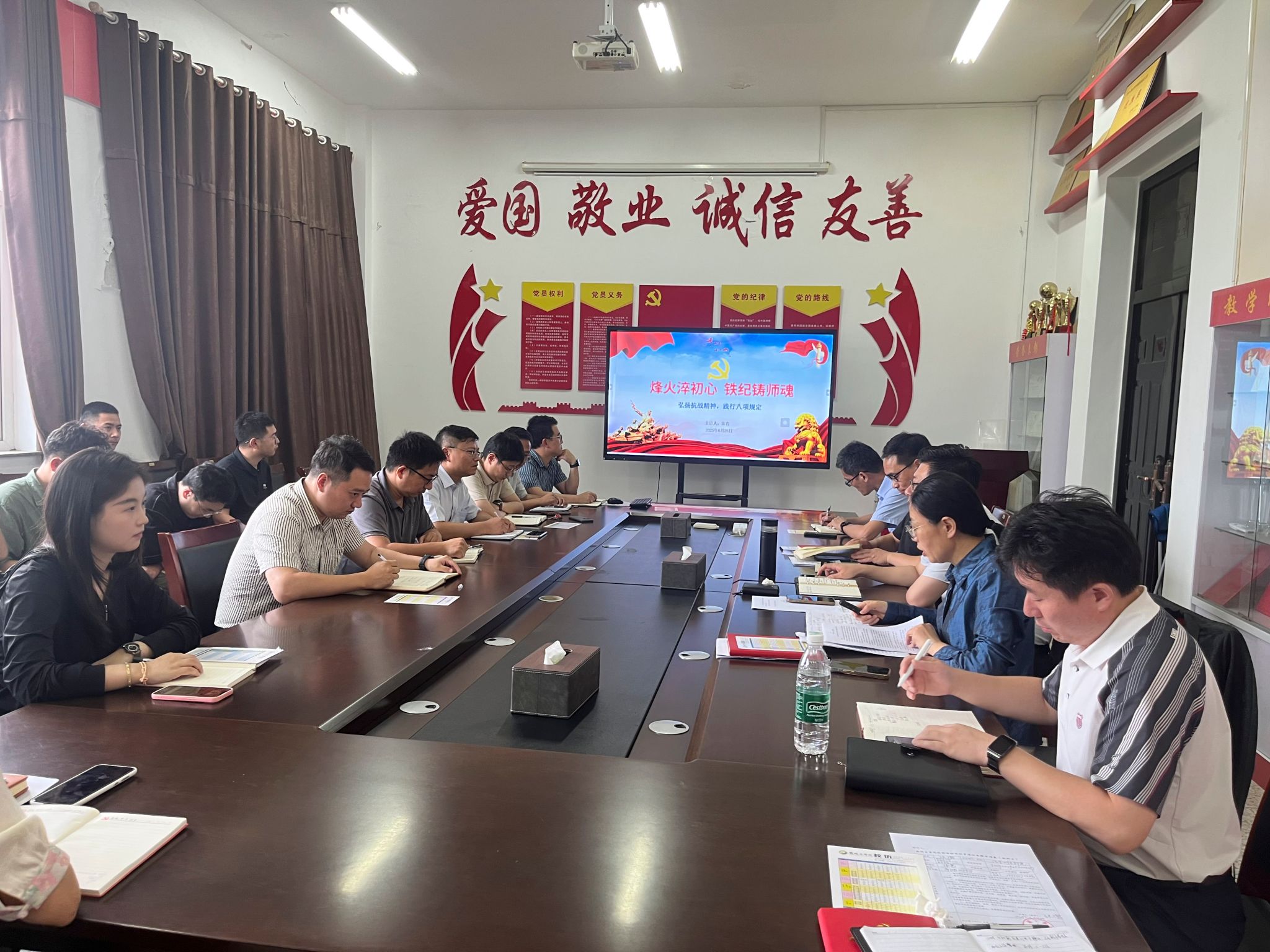 陈青强调,今年是中国人民抗日战争暨世界反法西斯战争胜利80周年,同时也是“十四五”规划收官之年,在这一关键时间节点,开展深入贯彻中央八项规定精神学习教育,是巩固深化主题教育和党纪学习教育成果、纵深推进全面从严治党的重要举措。全体党员干部要从抗战精神中汲取力量,深入领会中央八项规定精神的核心要义,将其转化为立德树人的实际行动,在言传身教中弘扬清正之风,努力做党和人民满意的“四有”好老师。她鼓励全体党员要在深学细悟中筑牢信仰之基,在言传身教中弘扬清正之风,在立德树人中培育纪律自觉,将中央八项规定精神转化为教育教学的严谨认真、科研探索的求真务实、关爱学生的赤诚之心,在教书育人中践行"为党育人、为国育才"的铮铮誓言,把中央八项规定精神内化为言行准则,为培养可堪大任的时代新人筑牢清廉基石!