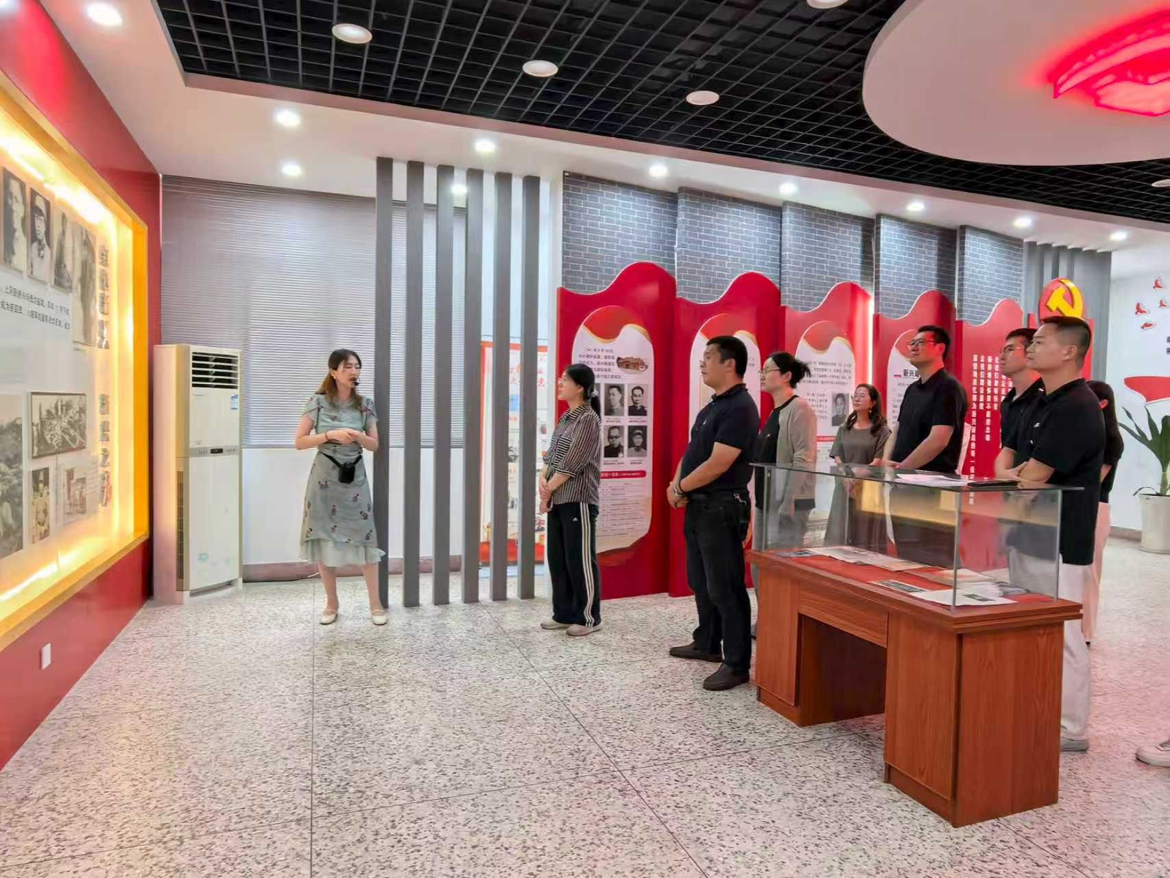 在参观学习阶段,全体成员系统地了解了新兴镇在革命历史中的重要战略地位,深情回顾了盐阜地区著名英烈的事迹以及历史文物背后的革命故事,深刻感悟了英烈们崇高的革命精神,观看了新兴英烈情景剧《血色家书》,12分钟的演出生动再现了沈纯烈士的英勇事迹和崇高精神。参观结束后,全体党员重温入党誓词,进一步坚定了肩负的责任与使命。