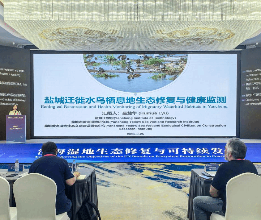 会上,环境学院吕慧华副教授作了题为《盐城迁徙水鸟栖息地生态修复与健康监测》的专题报告,系统介绍了大丰建川和东台川水湾在湿地生态修复和生物多样性保护方面的创新实践与显著成效,提出生态修复成功的关键在于实施“六位一体”的生态管家模式,实现从修复到运营管理的全程科学管控。