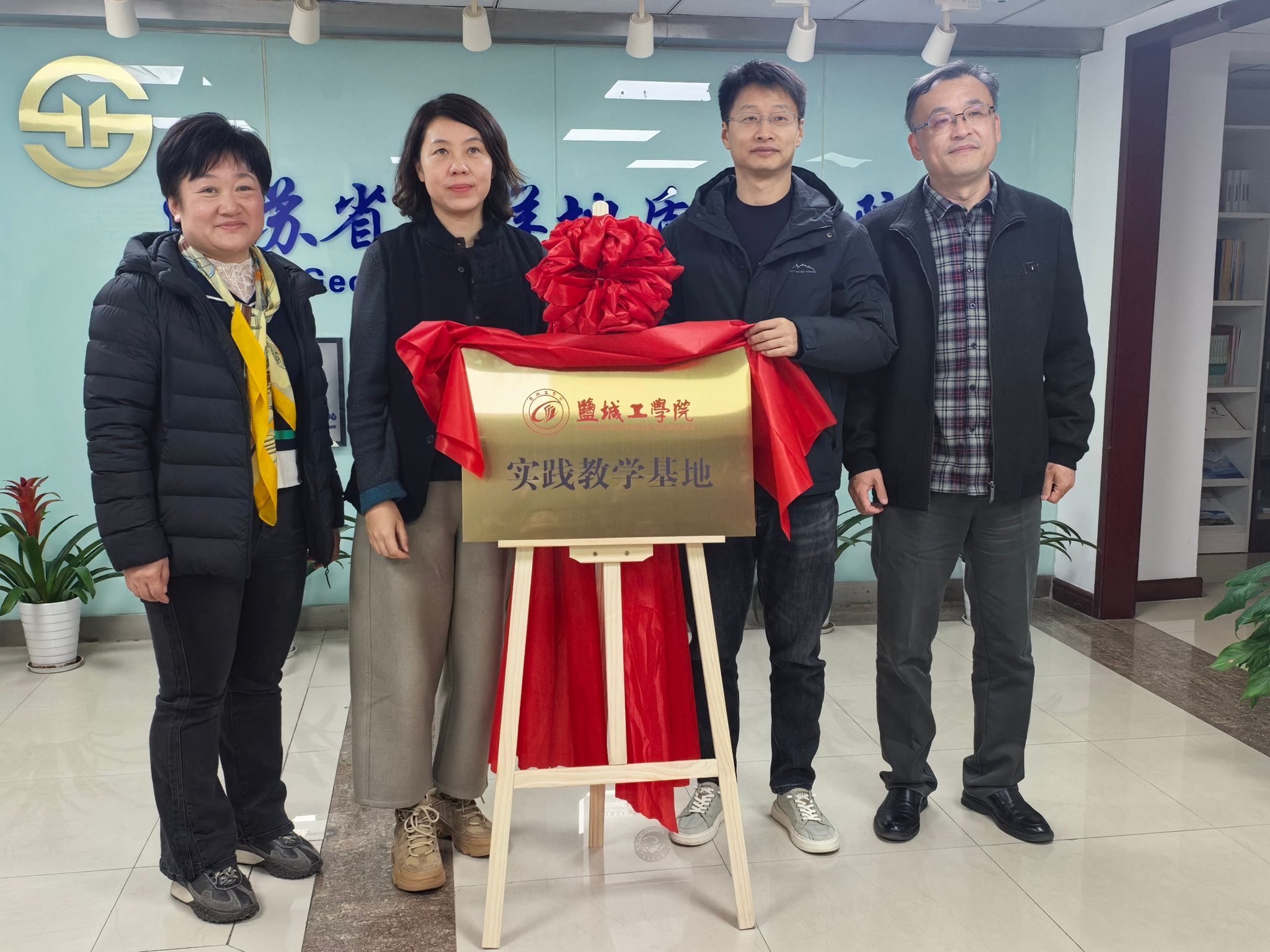 在双方代表共同见证下,陈天明与姜夏烨分别代表各自单位签订合作框架协议及实践教学基地共建协议。陈天明向江苏省海洋地质调查院授予“盐城工学院实践教学基地”铜牌,标志着双方在学生实习实践平台建设方面迈出关键一步。